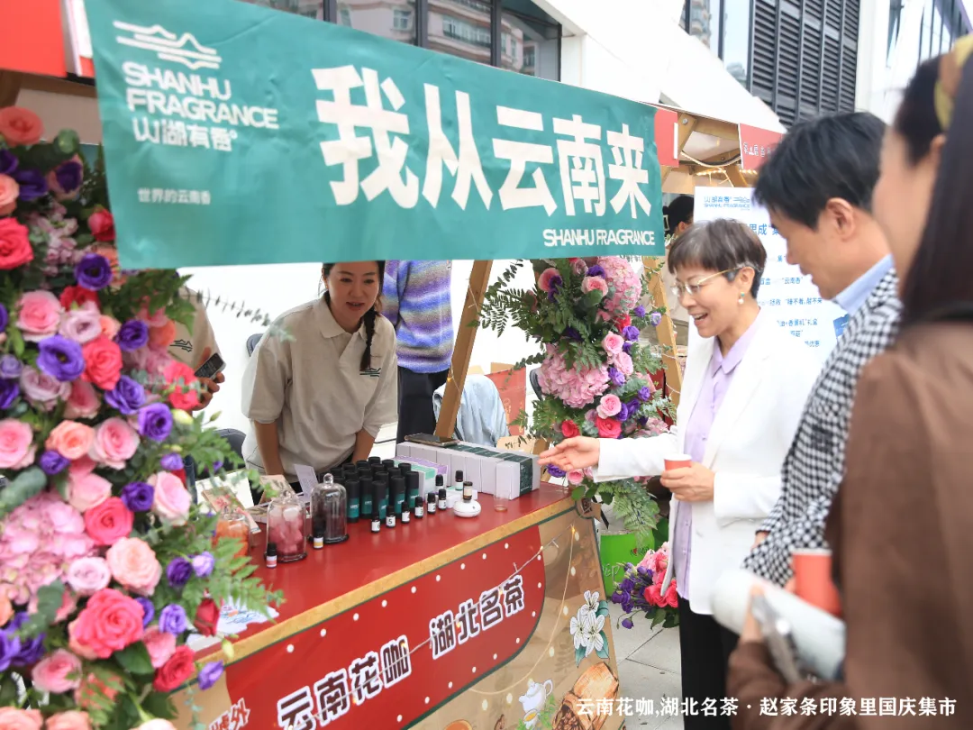 本次集市活动为期两天,现场人头攒动,热闹非凡,从下午3:00到晚上9:00,籍由赵家条印象里商场开业期间,伴随着乐队、走秀等文艺节目,为市民送上一场国庆盛宴。同时通过搭建茶文化与咖啡文化的深度交流平台,连接云南咖啡、鲜花高原特色农产品与湖北名茶品牌,激发品牌协同效应,助推区域经济繁荣。