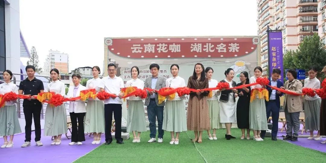 1日下午3点,武汉茶艺馆行业协会会长鄢向荣教授、名誉会长薛兵旺教授和武汉莘烁咖啡学院院长李雯臻等的带领下,由区领导及协会相关负责人共同为集市剪彩开幕。