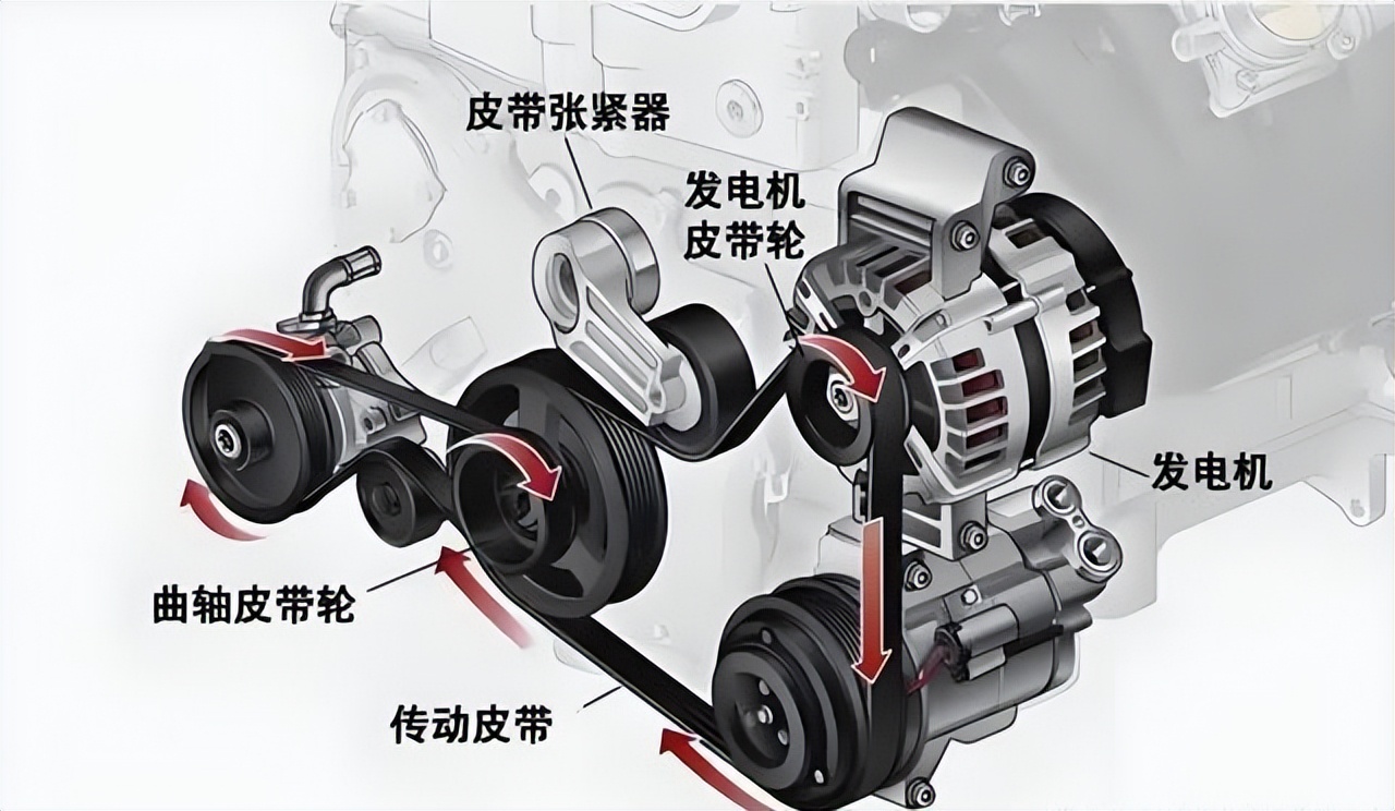 定期检查发电机皮带:老化打滑会导致发电不足,仪表盘可能不报警,但电瓶会悄悄亏电。