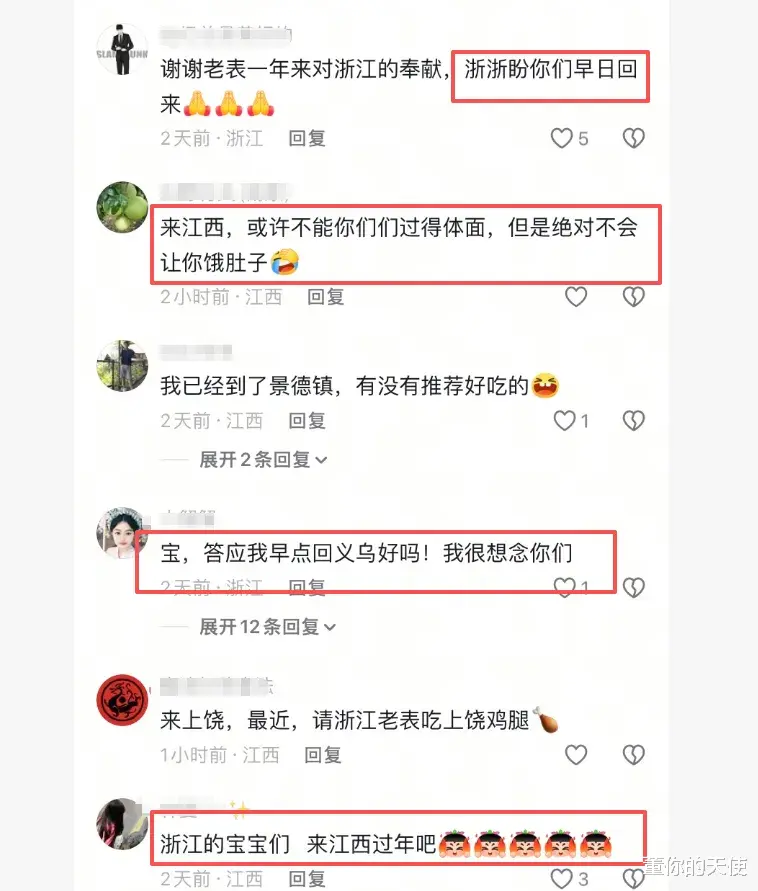 有意思的是,当江西老表回家过年的时候,很多浙江等地的朋友纷纷留言表示要尽快回来,十分的想念。