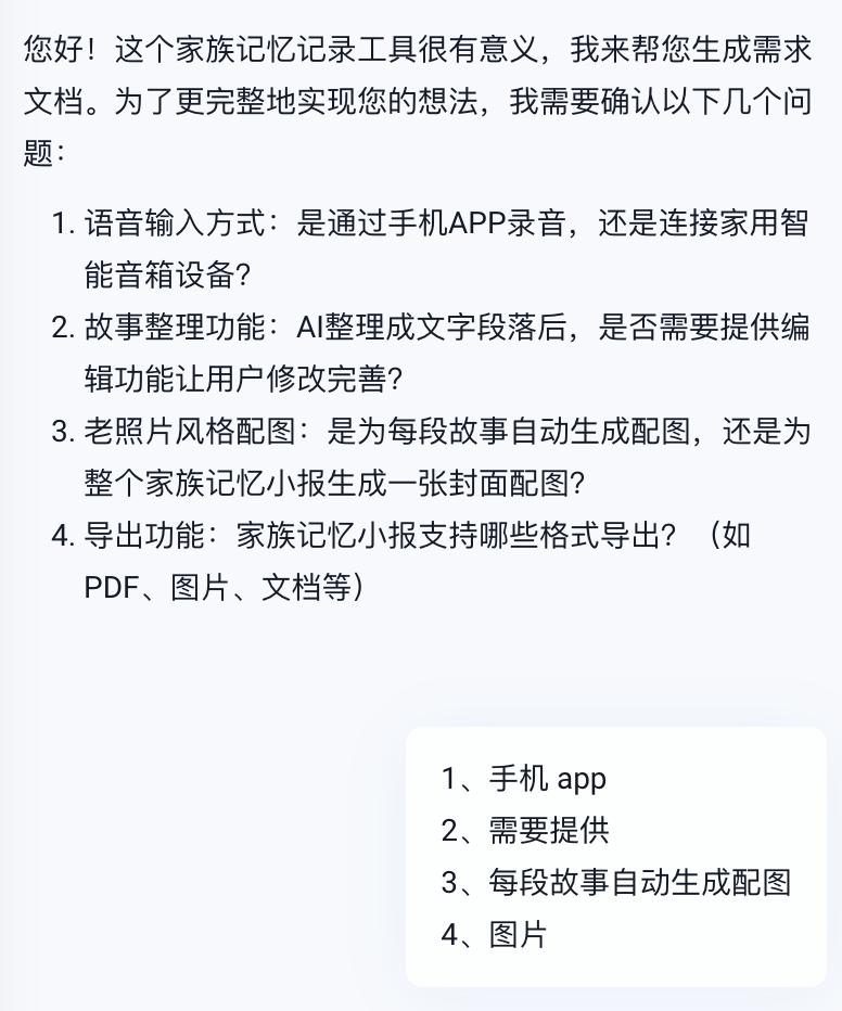 一开始我们写的需求很笼统,就是让秒哒做一个帮老人记录故事的应用。