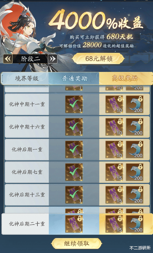 要说灵界新版本最值得投资的,莫过于花费少回报高的战令,这玩意儿简直就是个聚宝盆。每天上线清个日常,通关几个指定历练关卡,一大堆基础奖励直接白嫖到手。若是能稍微投入一点来解锁高级战令,灵界古宝券,功法要诀,造化等珍稀道具哗啦啦进账。别人还在辛苦攒资源,我的战力已经坐上火箭一路狂飙——这性价比,修仙界独一份!