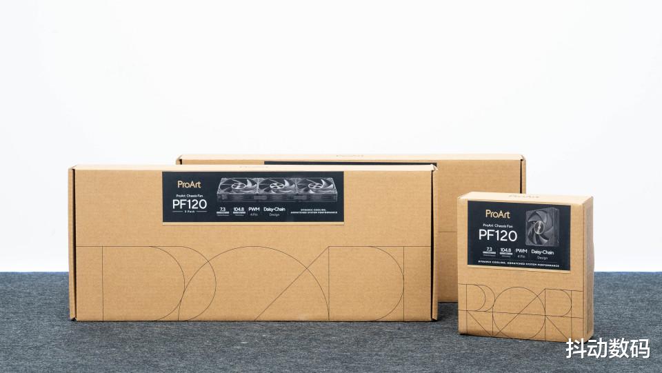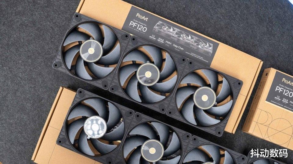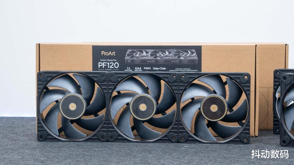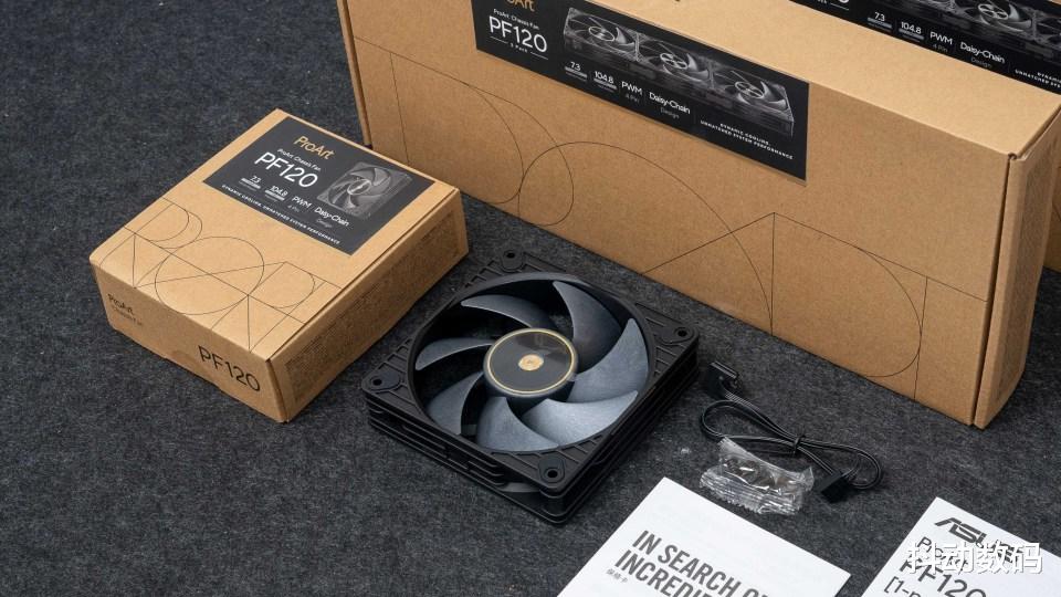 这里还选择了华硕ProArt PF120 风扇来辅助散热,作为华硕专为创作者以及工作站方向打造的风扇产品,其独特的串联方案,以及最高3000RPM的转速表现都让我 对他眼前一亮,配置上有三把套装以及单独包装可选。