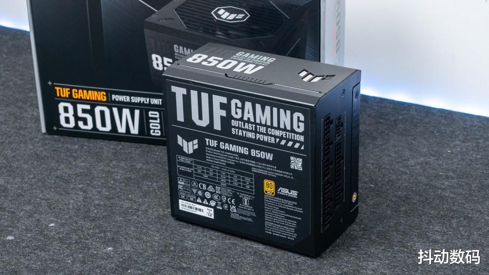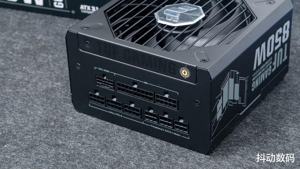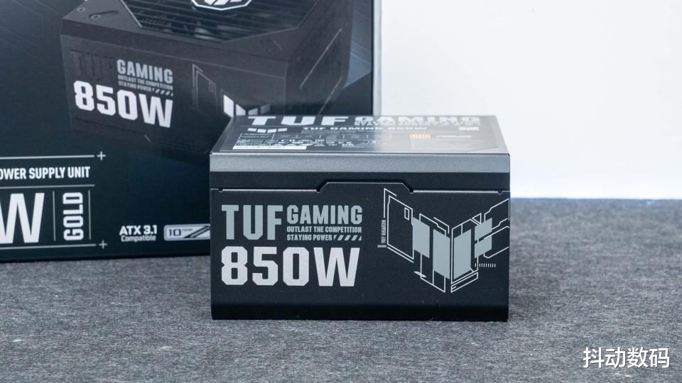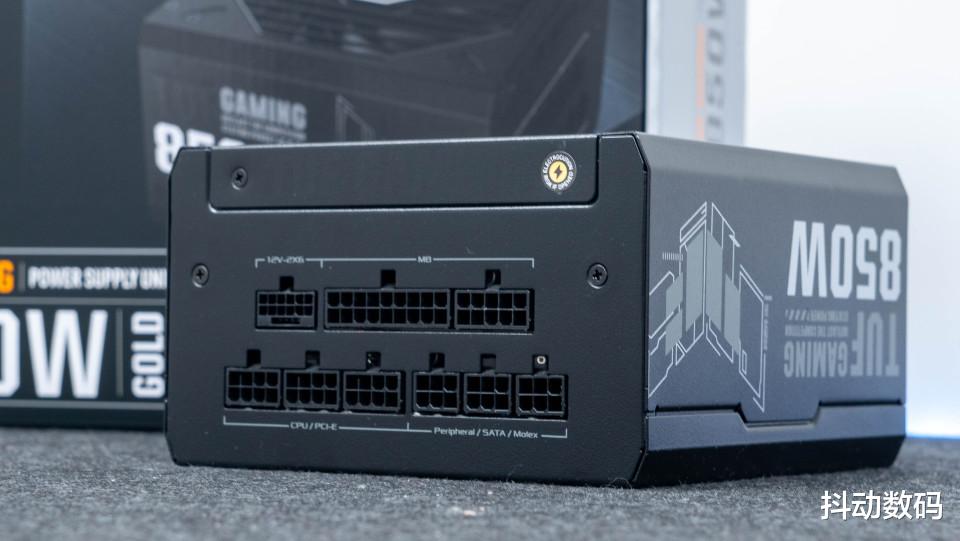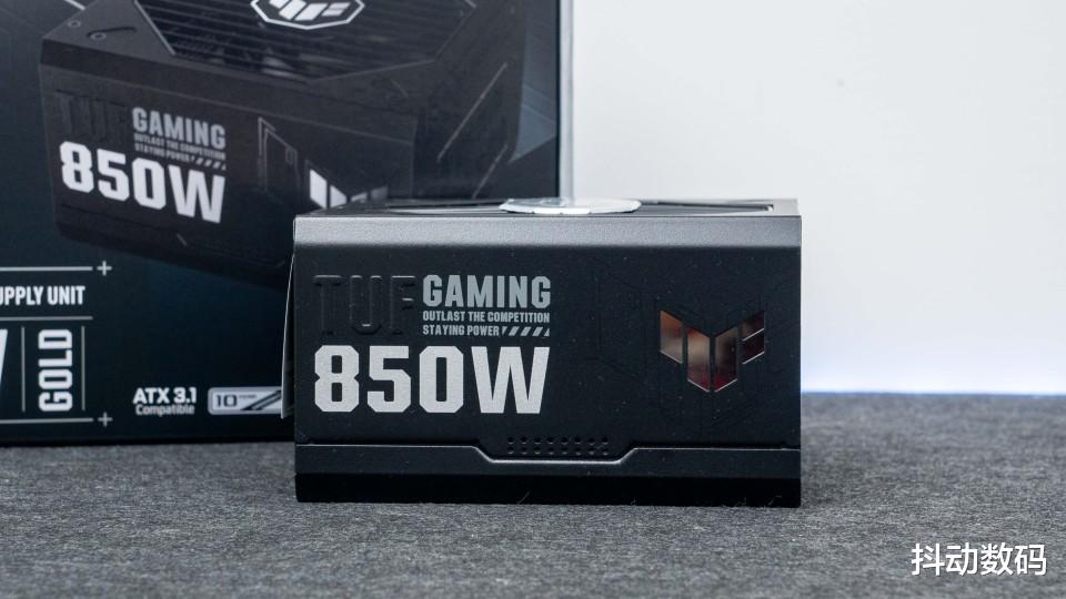 电源两侧均装饰了TUF GAMING 装饰以及850W额定功率标识,另外还有750W、1000W以及1200W多个选择,均为80Plus金牌认证产品。