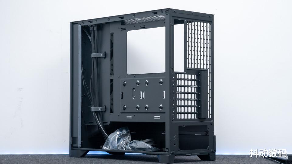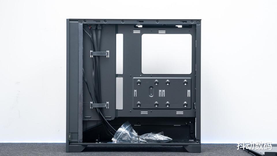 这款机箱其实预留了足够的背后理线空间,但是可以看到其不支持背插主板装机。