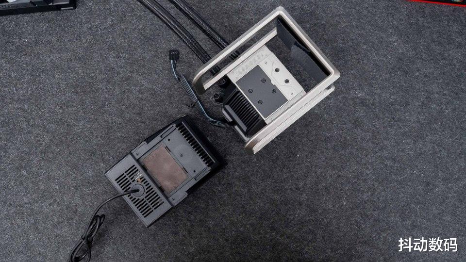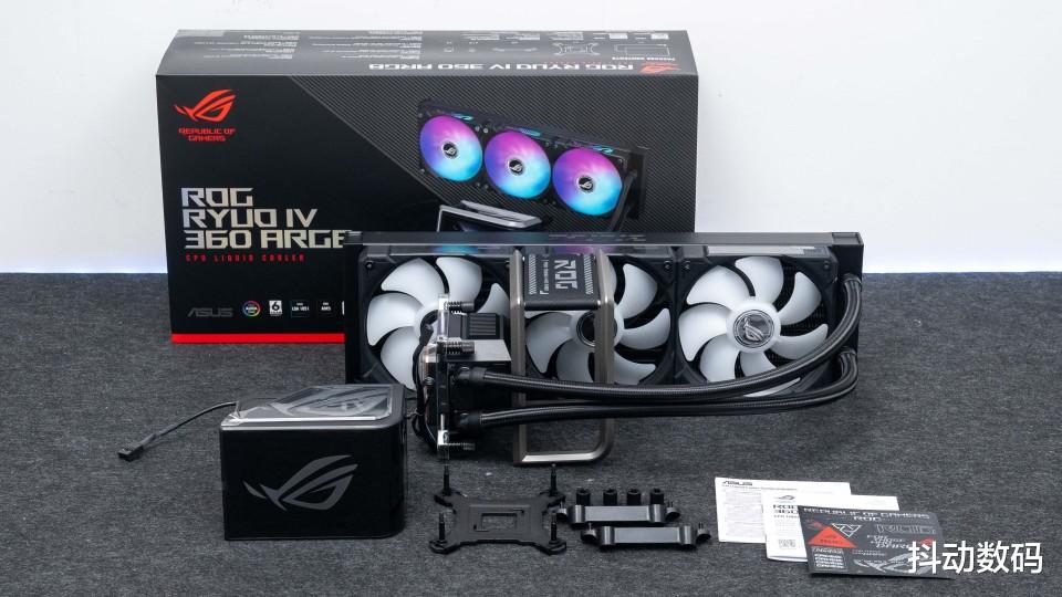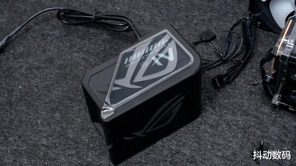 主要部件一览,ROG RYUO龙王四代 360 ARGB一体式水冷散热器标准版就是大家常见的一体式水冷设计,磁吸设计的曲面屏冷头设计是最大的外观亮点。