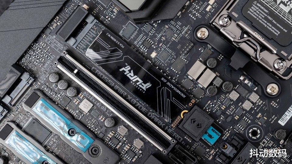SSD方面选择了金士顿最近推出的FURY Renegade G5 PCIe 5.0 SSD产品,属于金士顿的FURY系列。我的是2TB容量版本,最高读取可达14700MB/s。安装效果如图,搭配主板自带的散热片日常运行温度表现要比早期的PCIe 5.0 SSD好很多。