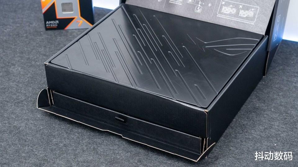 打开可以看到ROG纯血主板才有包装规格,这次包装还升级了底部附件抽屉盒的设计。