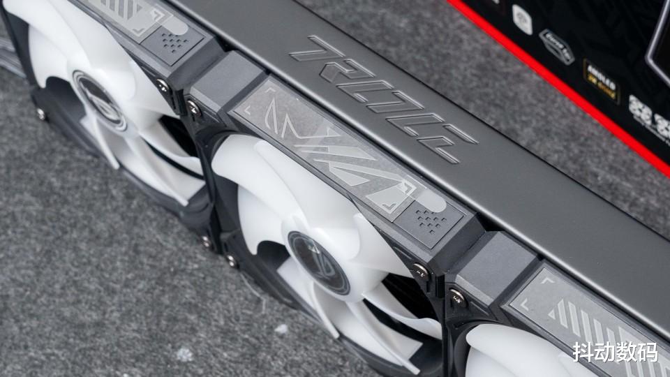 显卡侧面的PCB框架与散热骨架加入金属装饰,显卡尺寸为33.21cm x 6.96cm x 13.75cm。