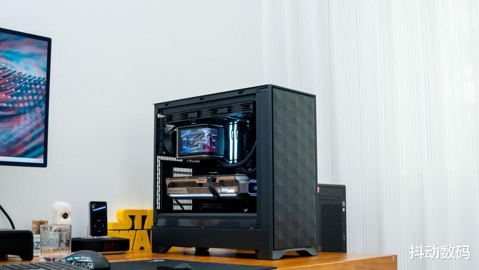 整机展示:分形工艺这款Pop 2 Air在桌面上真的看着非常低调,外观上其实有很多熟悉的FD机箱的元素。
