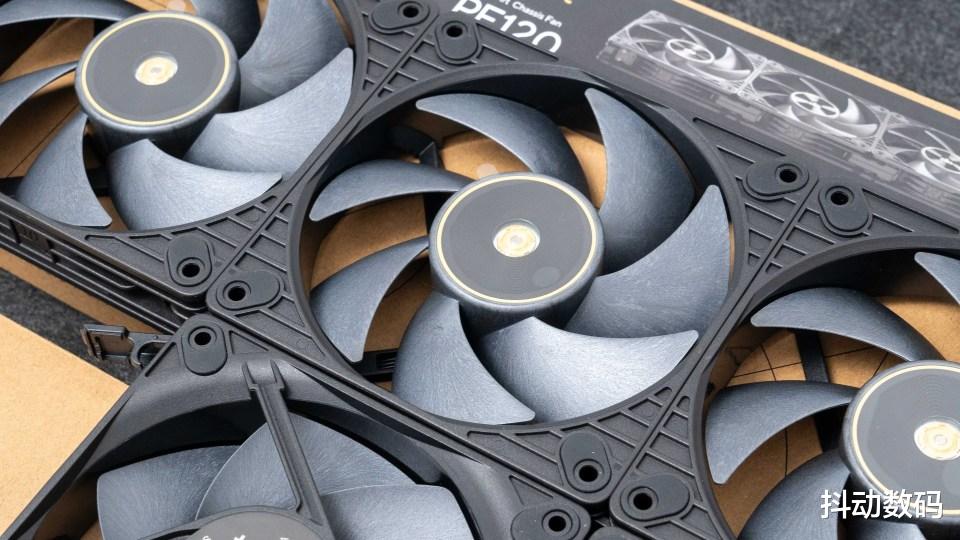 ProArt PF120才有黑灰配色设计,黑色的框架搭配灰色的扇叶设计,风扇轴心部分设计了一圈金色的装饰与纯铜轴芯颜色呼应。