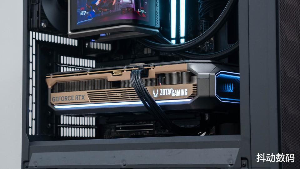 显卡选择的是索泰RTX 5080 AMP EXTREME INFINITY,AMP之前就定位于索泰的旗舰系列。在RTX 50系外观上相比前代40系可以说是颠覆的设计变化,一改之前的圆润设计,这次更方正了很多,在显卡尾部还加入了无限镜的灯光元素。