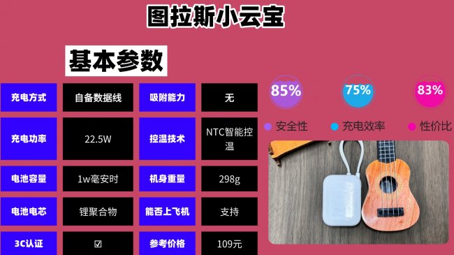 电池容量:电池容量为10000mAh,额定容量6250mAh,适合日常通勤或短途出行使用,基本能够满足一次性充电需求。不过,由于容量较小,对于长时间外出或者需要多次充电的用户来说,可能会稍显不足。