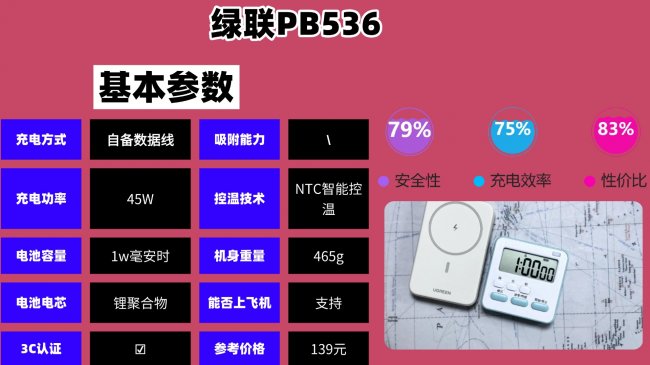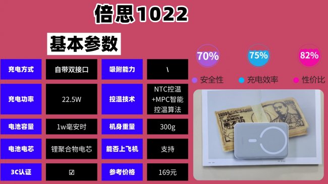 充电效率:支持22.5W的快充功率,充电速度足以满足日常需求。不过,使用时需要记得随身携带数据线,因为它仅配备了USB-C和USB-A两个接口,适合大部分手机充电,但可能会略显不便。