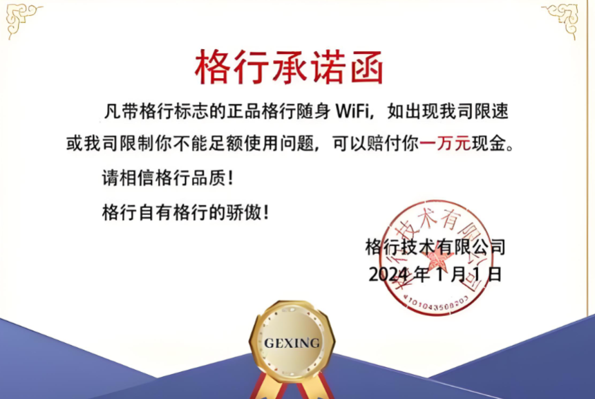 市面上多数随身 wifi 只保设备,流量坑了只能认栽?格行偏要打破常规!行业首创 “设备 + 流量” 双质保模式,5 年超长有效期内,不仅设备故障能免费维修,就连流量虚标、限速等隐蔽问题也能直接理赔。要知道,设备坏了投诉无门、流量缩水维权难,曾是随身 wifi 用户的两大 “心头恨”,格行直接把 “双重保障” 写进承诺,让每一分钱花得都有底气。