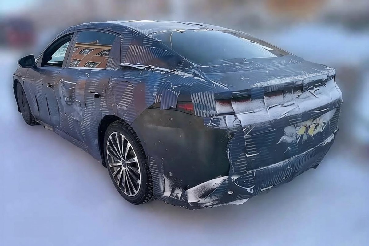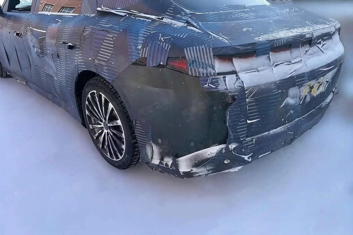 再从车尾部分来看,虽说这拍摄角度有限,但从车身弧顶结构与车窗线的构造来判断,它的尺寸预计会在5.2米级别左右,轴距也肯定会超过3米、往更高规格上走。