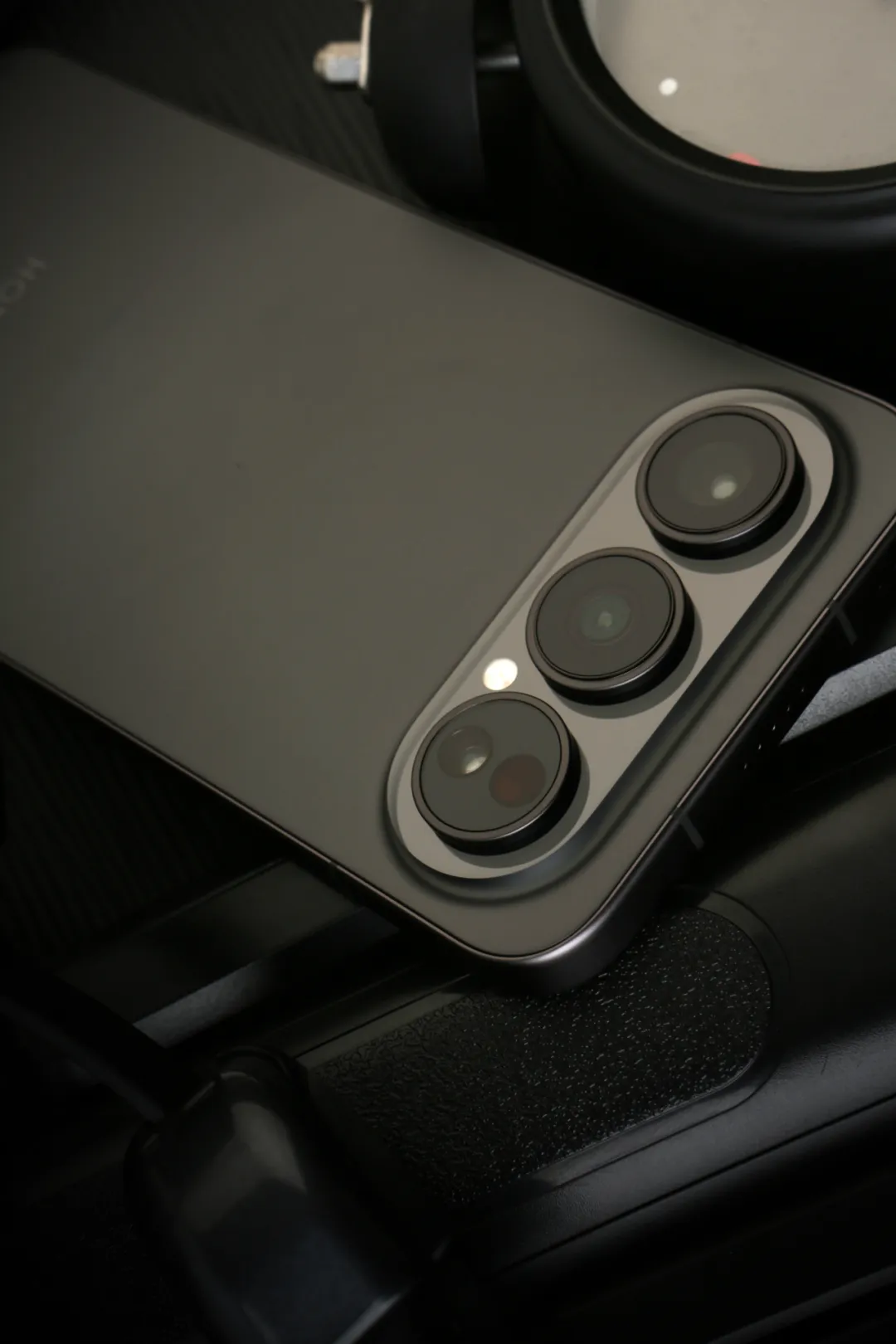 从视觉秩序看,水平轴线精确分割机身顶部,构建出一种稳定、对称的几何美感,既呼应了专业相机的经典布局,又在横屏游戏或观影时,让镜头边缘自然贴合虎口,带来类似手柄的趁手感;竖屏单手握持时,手指亦不会误触遮挡镜头,扫清了日常拍摄的微妙障碍。这种“竖握不挡手,横握更趁手”的细节考量,恰恰是旗舰质感最扎实的注脚——它不炫耀参数,只在每一次真实使用中传递体贴。