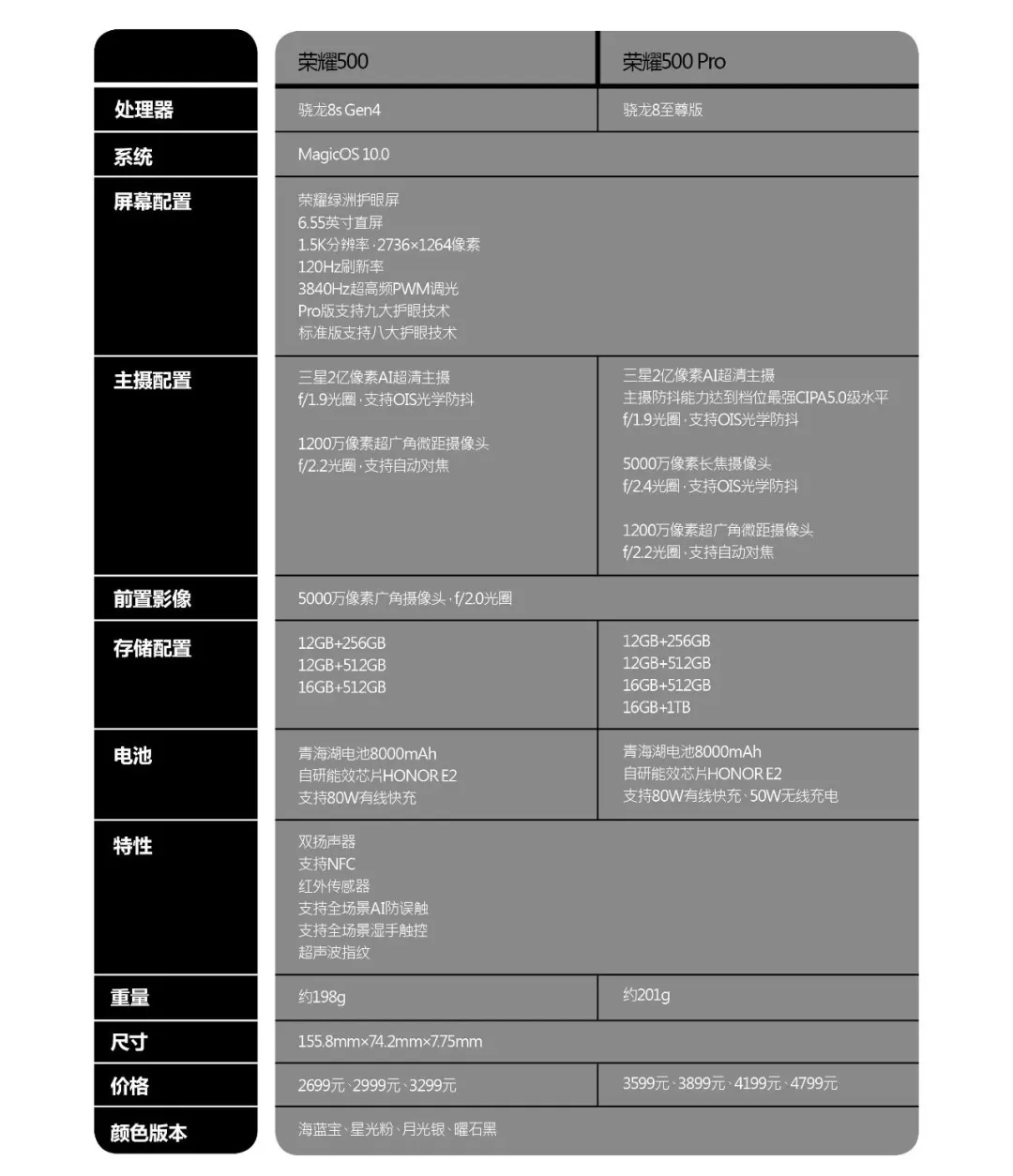 编者按:这次的荣耀500系列有一个非常让人心动的地方,就是在处理器平台上选择了“全系搭载骁龙8系旗舰平台”的路线,其标准版搭载骁龙8s Gen4,Pro版则搭载骁龙8至尊版,各位再也不用因为“骁龙7系”的存在而“心有不甘”了。从这个角度来说,即便荣耀500系列并没有延续一年前荣耀300系列“有Ultra版本可选”的方案,也仍然让人挑不出毛病。