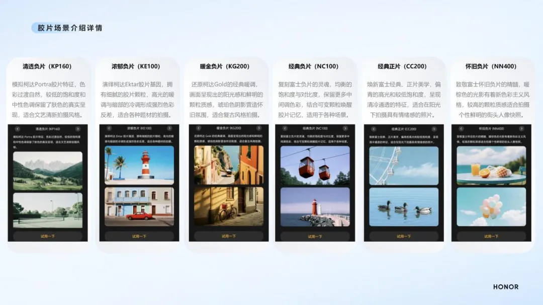 但真正让“动真格”成为品牌标签的,是荣耀500系列在实况功能上的全维度覆盖。当行业仍在争论“实况是否必要”时,荣耀已将其推至“档位最全玩法”的高度。其核心突破在于行业唯一的前后置Live人像美颜与虚化能力——通过云端人像美颜算法的实时介入,无论自拍或他拍,3秒实况均可获得电影级的背景虚化与主角感呈现,且效果稳定贯穿始终。配合6款源自经典胶片基因的色彩算法(清透负片KP160、浓郁负片KE100、鎏金负片KG200、经典负片NC100、经典正片CC200、怀旧负片NN400),我们可以在柯达Portra的细腻颗粒与富士正片的鲜艳透亮之间自由切换,为动态画面注入跨越时代的浪漫质感。