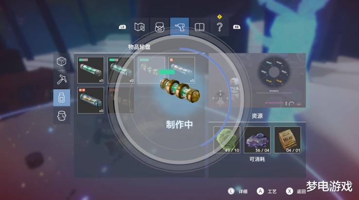 但游戏在这方面的操作有些过于生硬,我们首先需要进行扫描,学习物品的制作方法,然后用背包内的物资制造物品,紧接着我们需要在轮盘中选定我们需要用的物品,最后再使用这个物品。这一点我们后面再说。