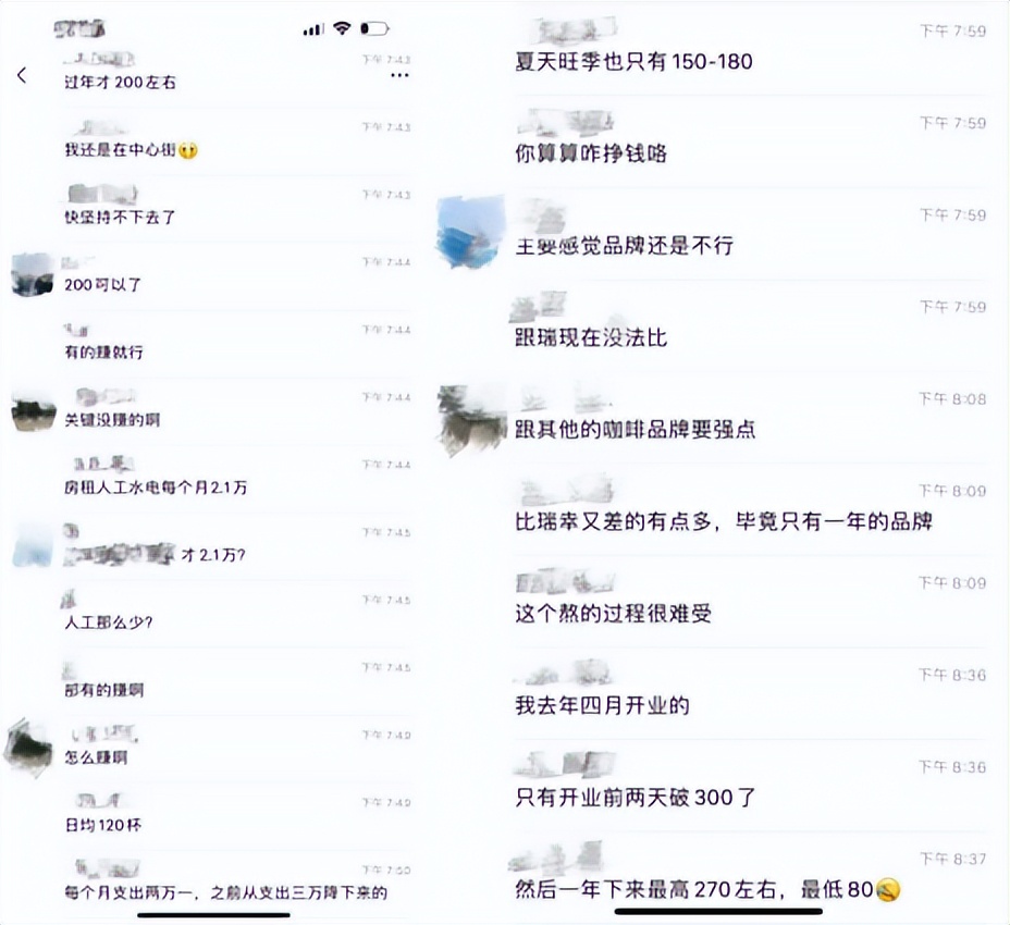 近期在一个库迪联营商内部讨论群里,有一位联营商透露,他是2023年4月开的店,选址还是当地的中心街,但营业快一年了,夏天旺季只有150-180杯,平均到开业以来的每日,平均都只有120杯,最低的时候甚至只有80杯,而本该是生意最好的过年期间,日均也只有170杯。