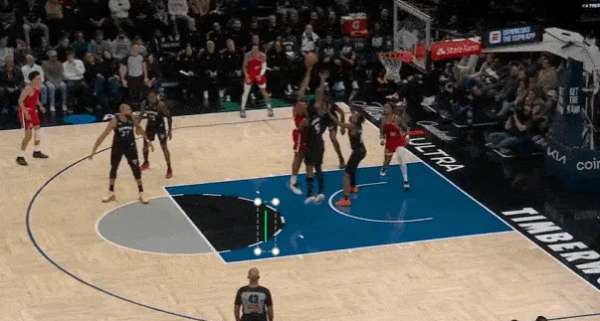 持球过半场的途中立即衔接和巴图姆在中线超高位置的“Drag Screen”配合成功点到鲍威尔错位,