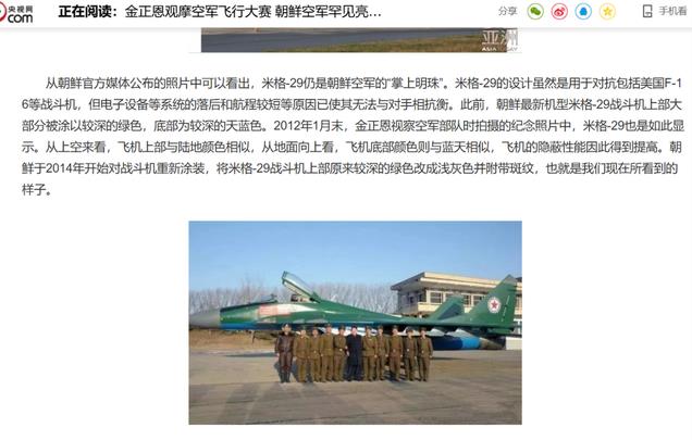 有分析人士认为,米格-29战斗机在朝鲜的地位堪称是“国之利刃”,但由于航材库存、保养情况和缺乏先进空对空导弹因素的影响,米格-29战斗大队的实战能力还要打上一个问号。