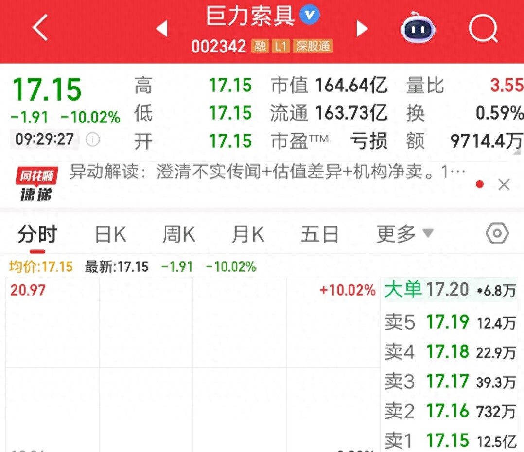 集合竞价一字跌停,12.5亿资金砸盘。