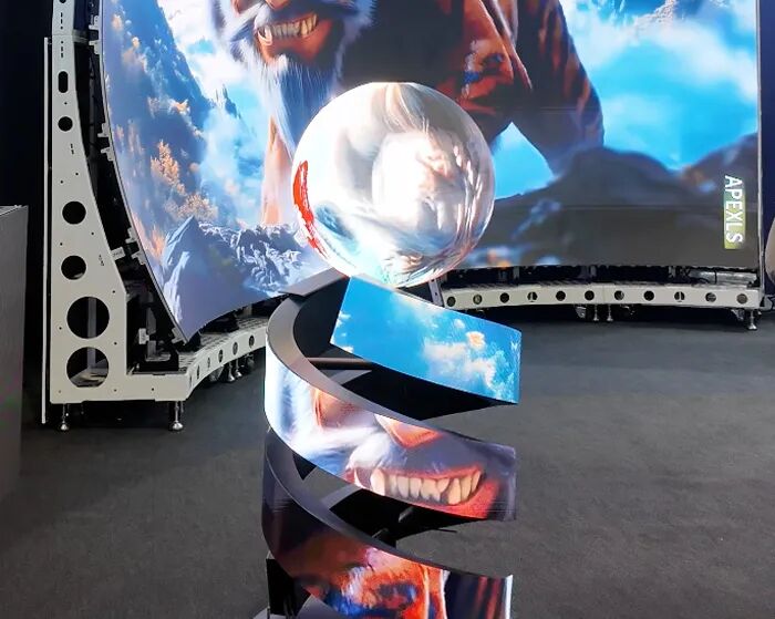 另有 K 系列租赁屏、球形屏(获深圳企业创新纪录)、螺旋屏(柔性异形拼接)等创意产品,覆盖多场景,解锁显示新可能。