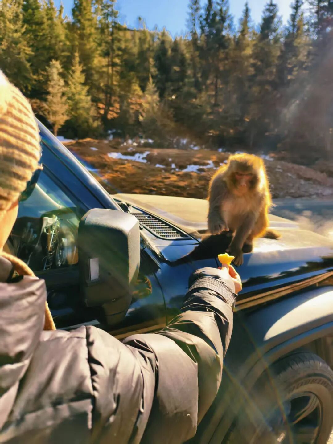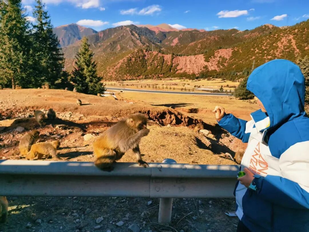 亲子贴士:和孩子约定好投喂规则,近距离观察野生猴群,感受自然生灵,投喂后立即上车离开。