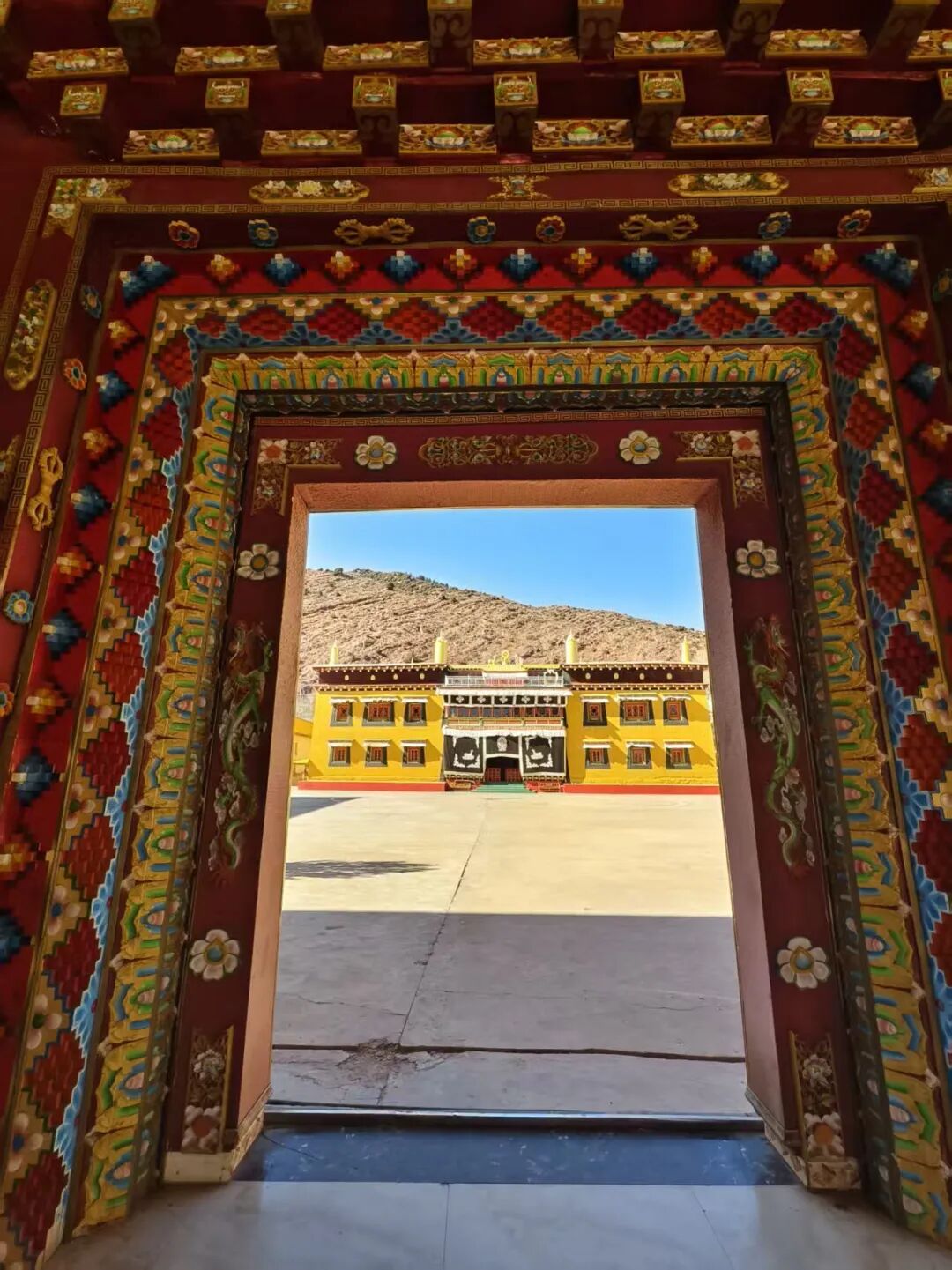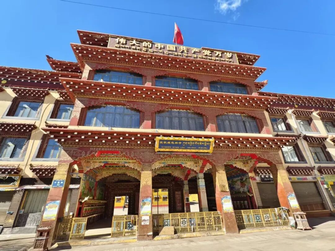 攻略:从南门进入,先绕白塔群顺时针转经祈福,主殿区可看传统藏式建筑与彩绘,带孩子轻声慢行,不踩门槛、不随意触碰殿内物品,殿内禁止拍照;寺外有小型休息区,可稍作休整再出发,周边无餐饮,建议提前备好饮用水和小零食。