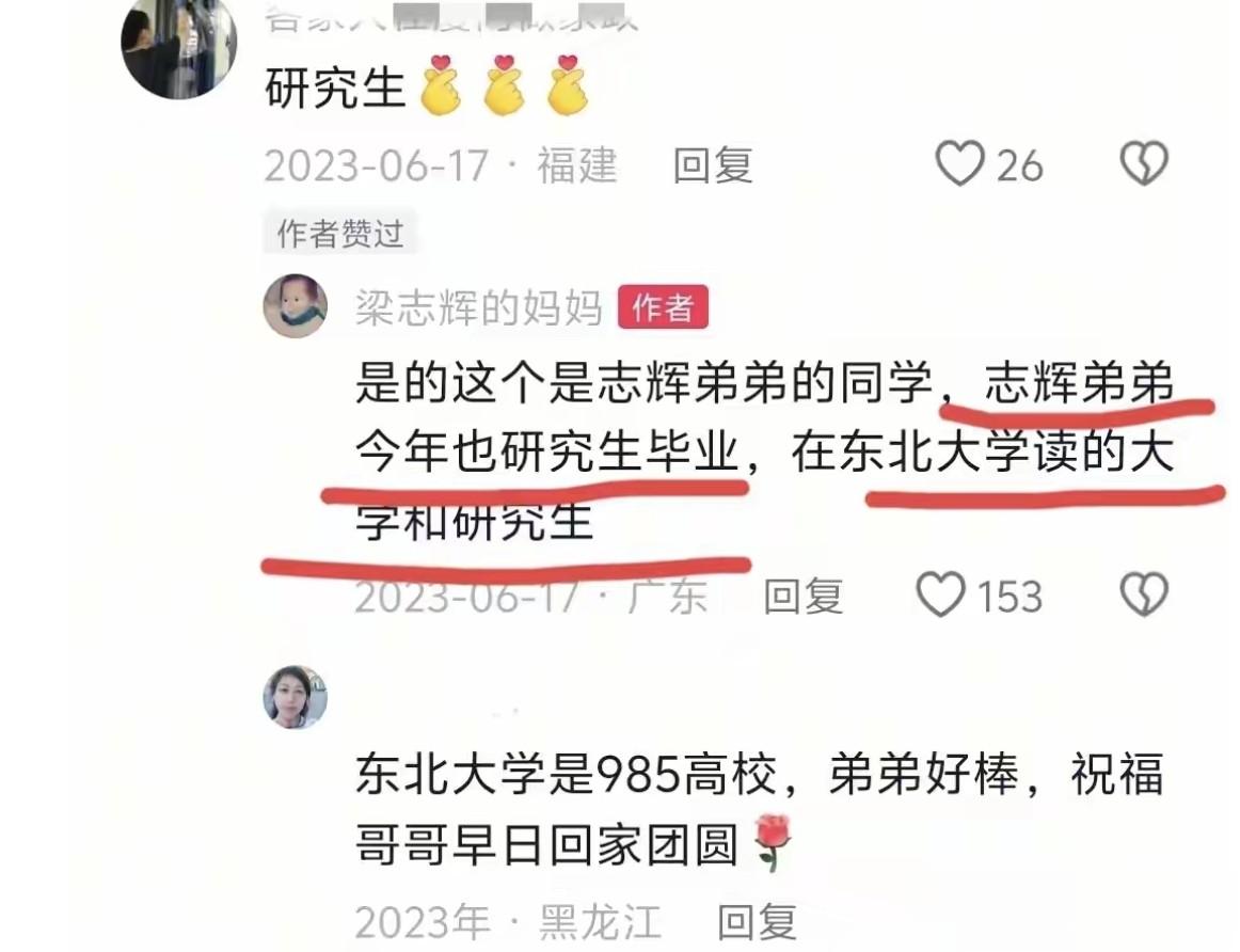 据网友透露,梁志辉的弟弟985大学毕业后便去了字节跳动,妥妥的高薪工作。