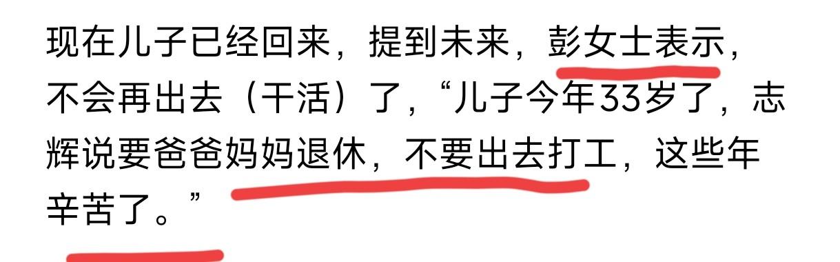梁志辉母亲告诉记者,梁三寿夫妇不会再出去干活了,梁志辉让爸爸妈妈退休,不要出去打工,这些年辛苦了。