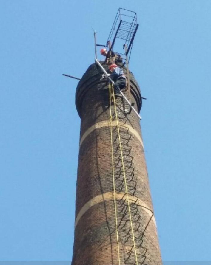 安全防护强化:在筒首作业区域外侧设置临时安全防护栏(高度 1.2m),拉设安全警示绳,防止工具坠落;作业平台与烟囱筒身之间用防滑橡胶垫贴合,减少晃动。