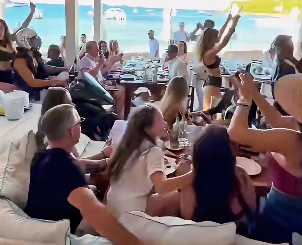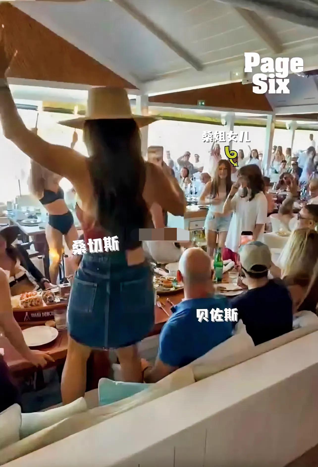 现场桑切斯安排兔女郎举着女儿生日的牌子,由身穿比基尼的美女送进来,后面还跟着摩托车拿着礼物,气氛组随着音乐节奏舞动着进来了,气氛相当的热闹!