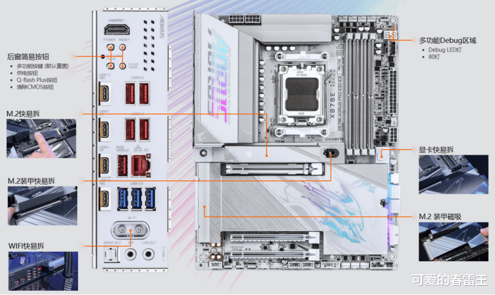 双 PCIe 快易拆:在 PCIe x16 插槽配备独立快拆键,让咱轻松实现一键拆装显卡;