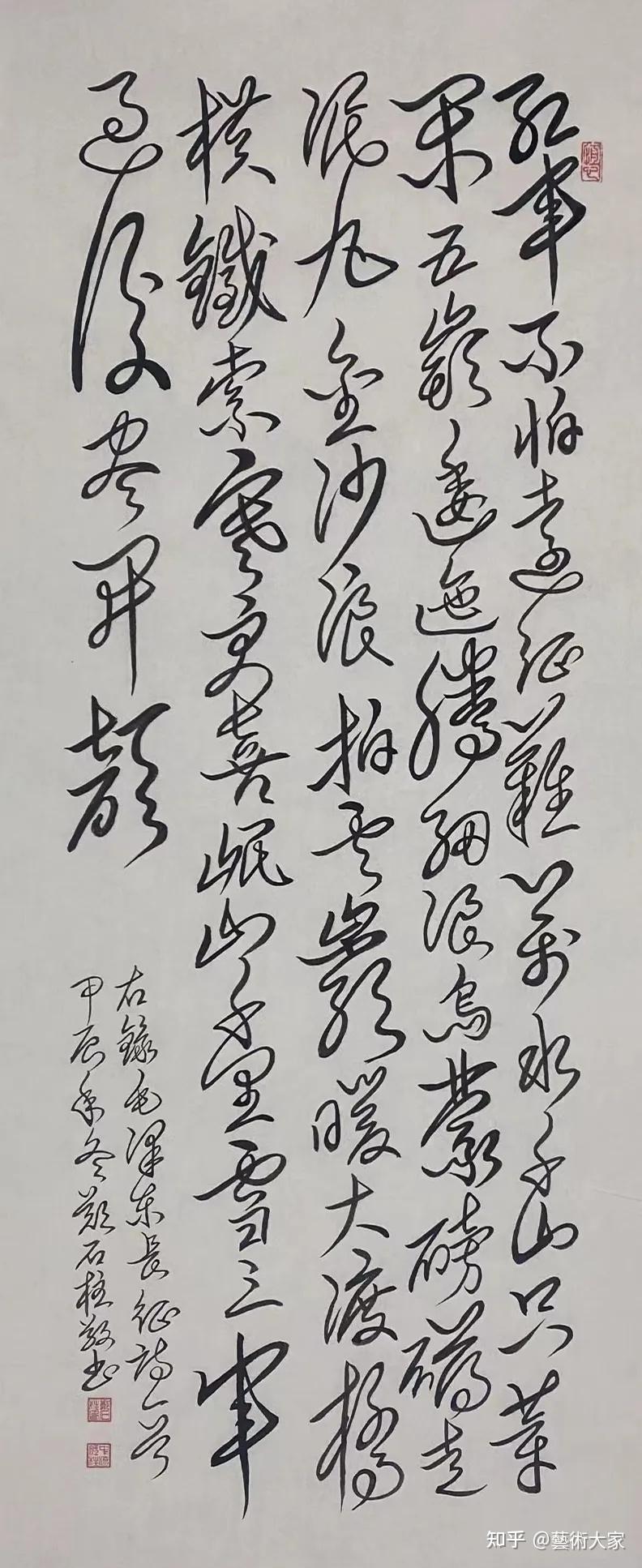 郑石柱长年热爱书法创作,尤为情钟历代经典行草作品的研习,日积月累,临池不辍,功底扎实。对毛体草书习练更是如痴似醉,心摹手追,逐步形成自己的书风。