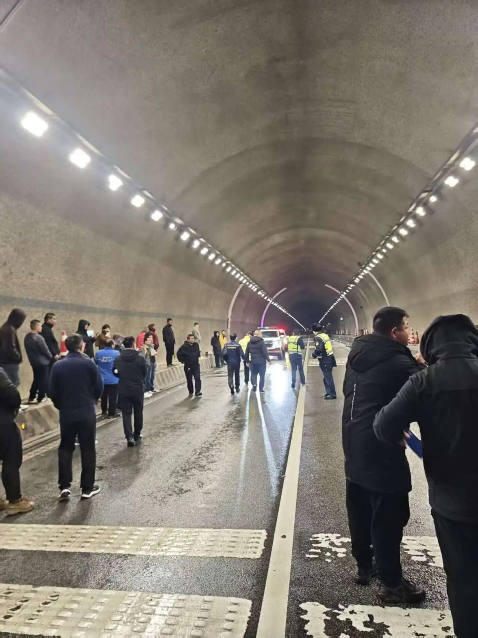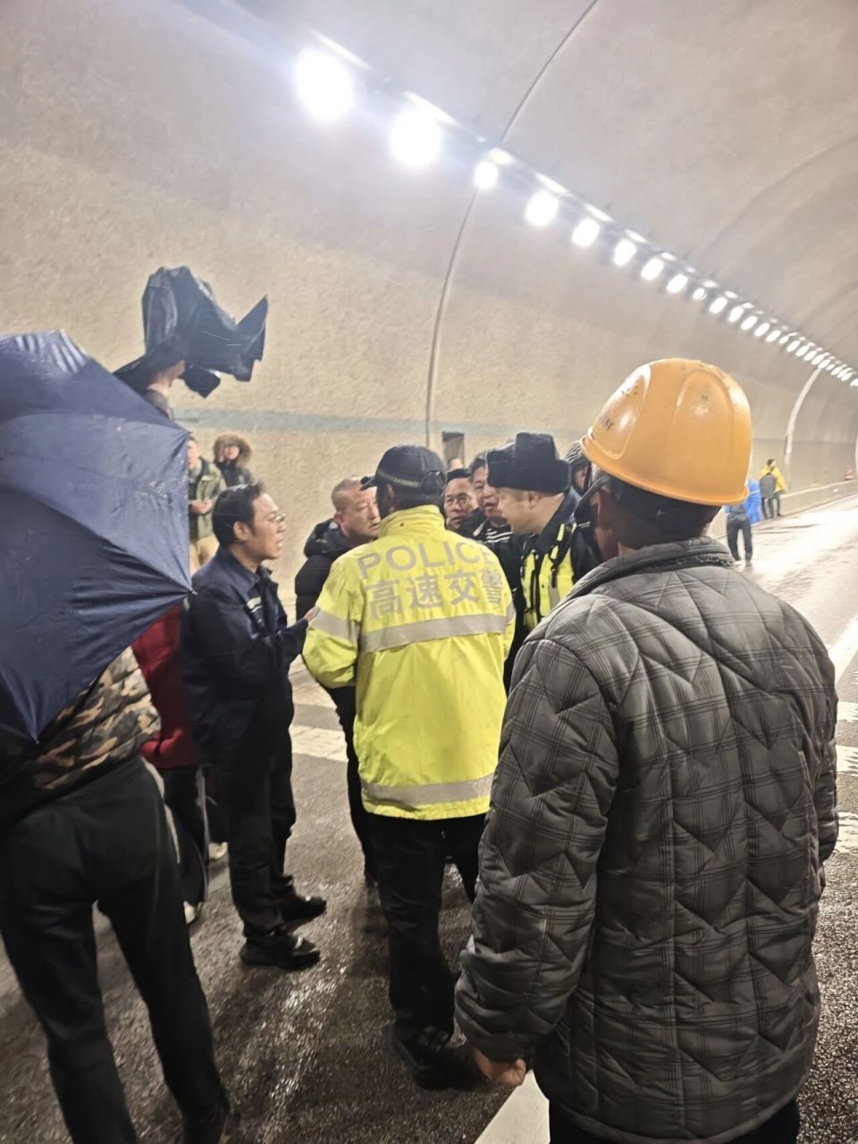 19时23分,高速养护施救部门负责人江双发带领人员在隧道南入口完成交通管制,也带队进了隧道。他们在黑暗中逐车排查,引导被困人员向南疏散,并指挥20多台车有序撤离。
