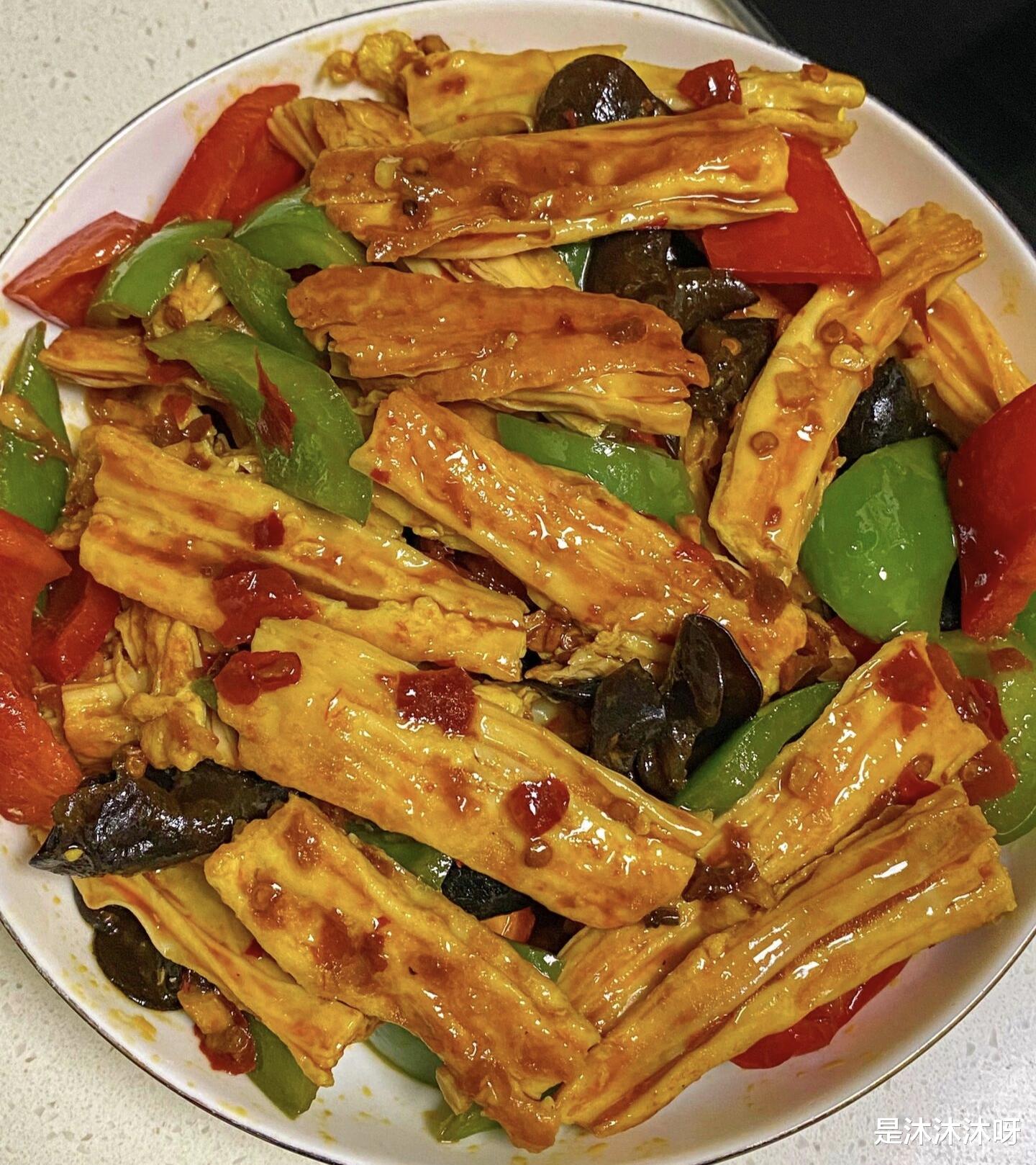 一盘热气腾腾、香气扑鼻的小炒腐竹便大功告成了。夹起一筷子,腐竹的柔韧与配菜的脆嫩交织在一起,咸鲜微辣的汤汁在口腔中弥漫,每一口都是层次丰富的享受。