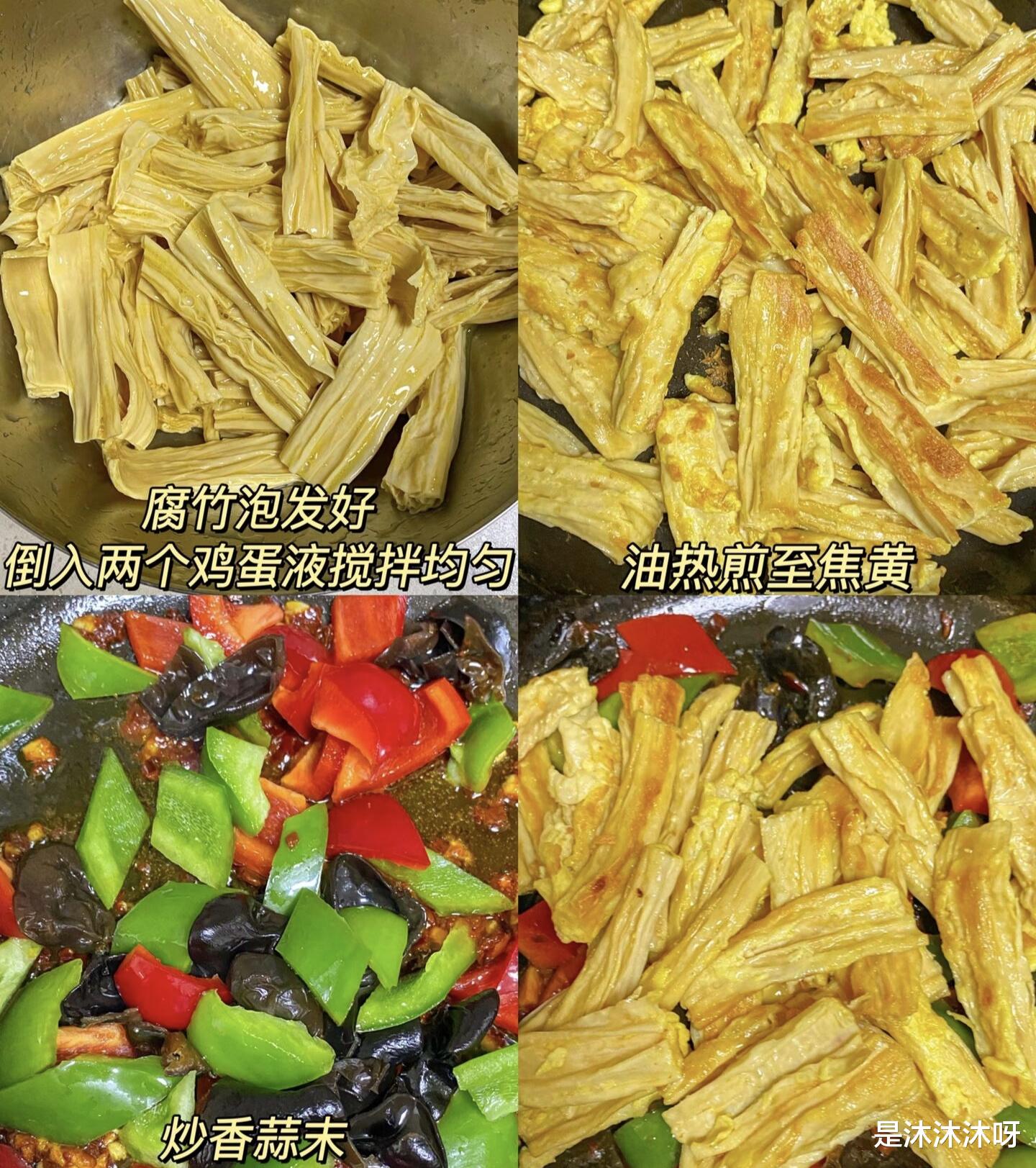 随后,重头戏登场,将沥干水分的腐竹倒入锅中,与配菜一同翻炒。此时,可以沿着锅边淋入少许料酒,那瞬间升腾的酒气能有效去腥增香。