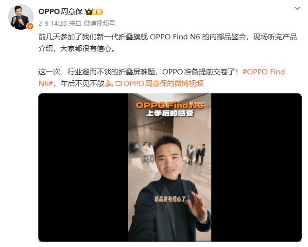 然而更值得期待的,是即将发布的OPPO Find N6。据悉它将搭载全新“黑绷带玻璃”技术,不仅致力于实现更浅的折痕(爆料称其“最浅折痕”体验将独占市场),还解锁了屏幕自修复能力,耐用性提升到新高度,OPPO周意保也在近期预热Find N6时表示:“行业避而不谈的折叠屏难题,OPPO准备提前交卷了。”所以当苹果为你扫清了换机的最后一道障碍时,摆在面前的已是一个清晰的选择:是等待iPhone Fold,还是直接选择一台在折痕控制、耐用创新上已被验证乃至被追赶的成熟旗舰OPPO Find N6,想必你心中已经有答案了。