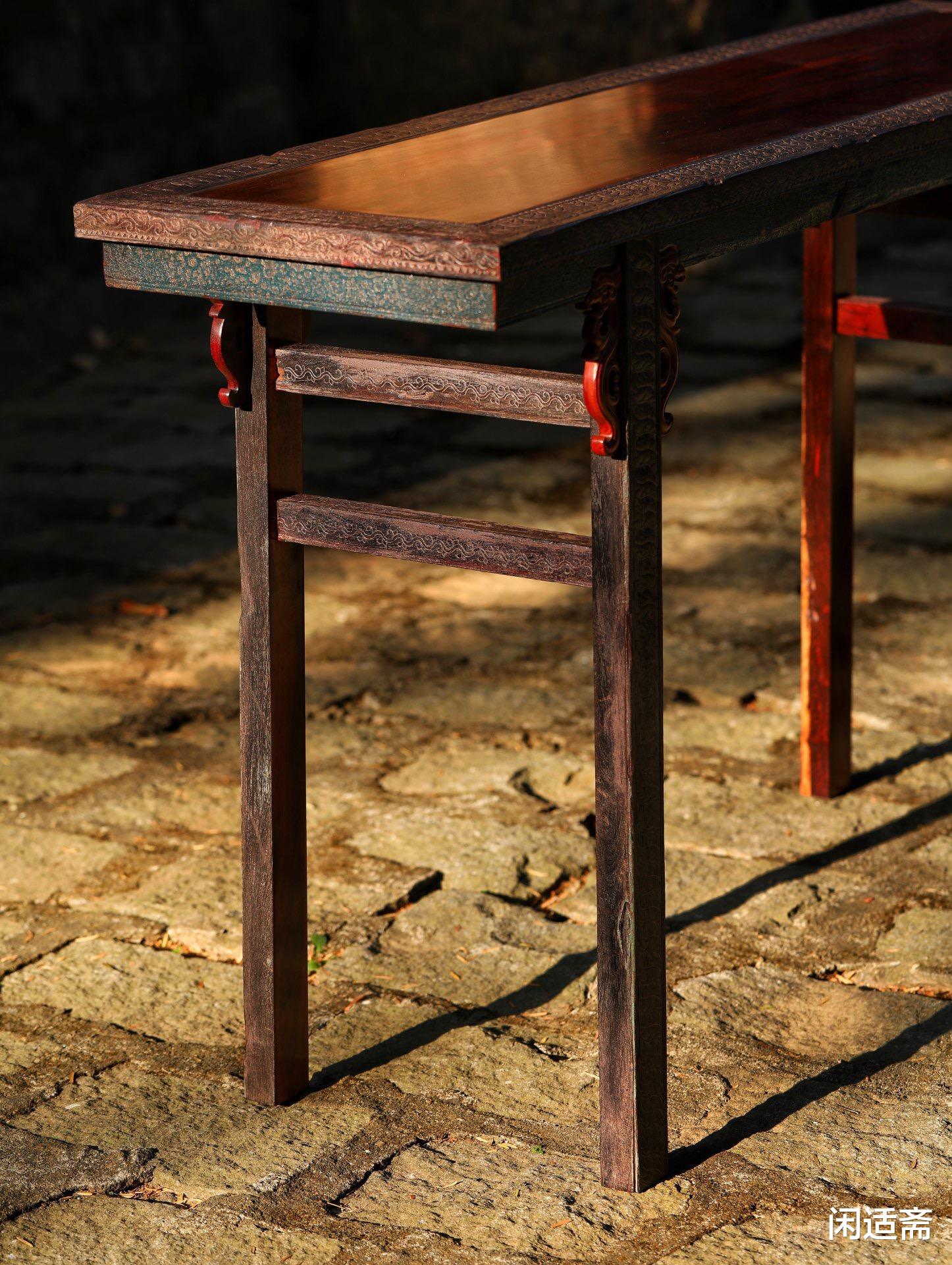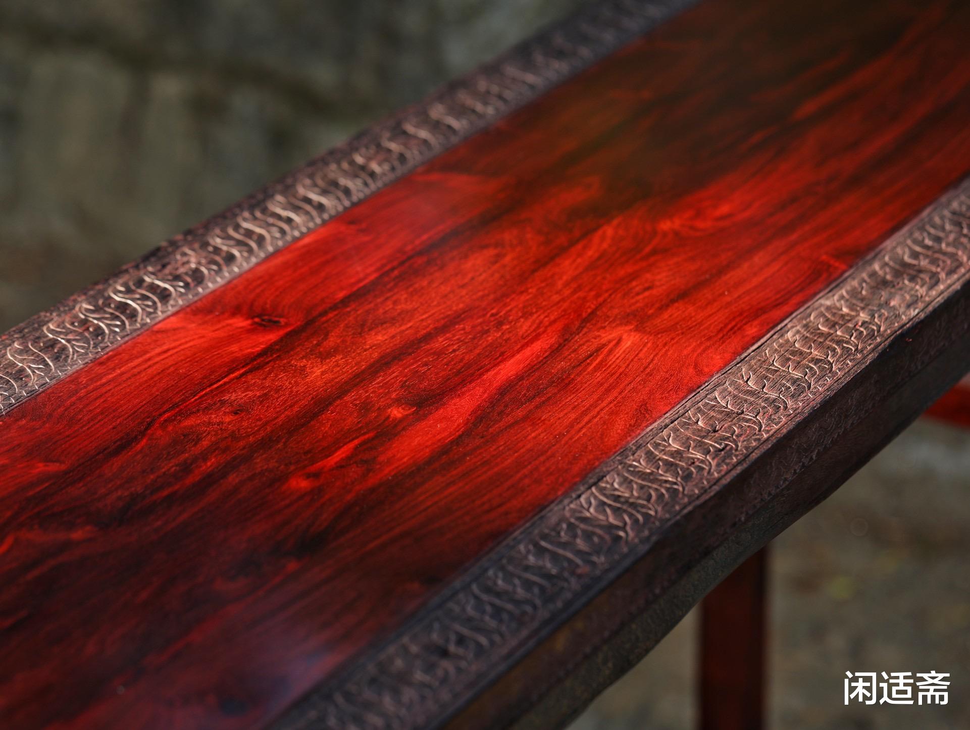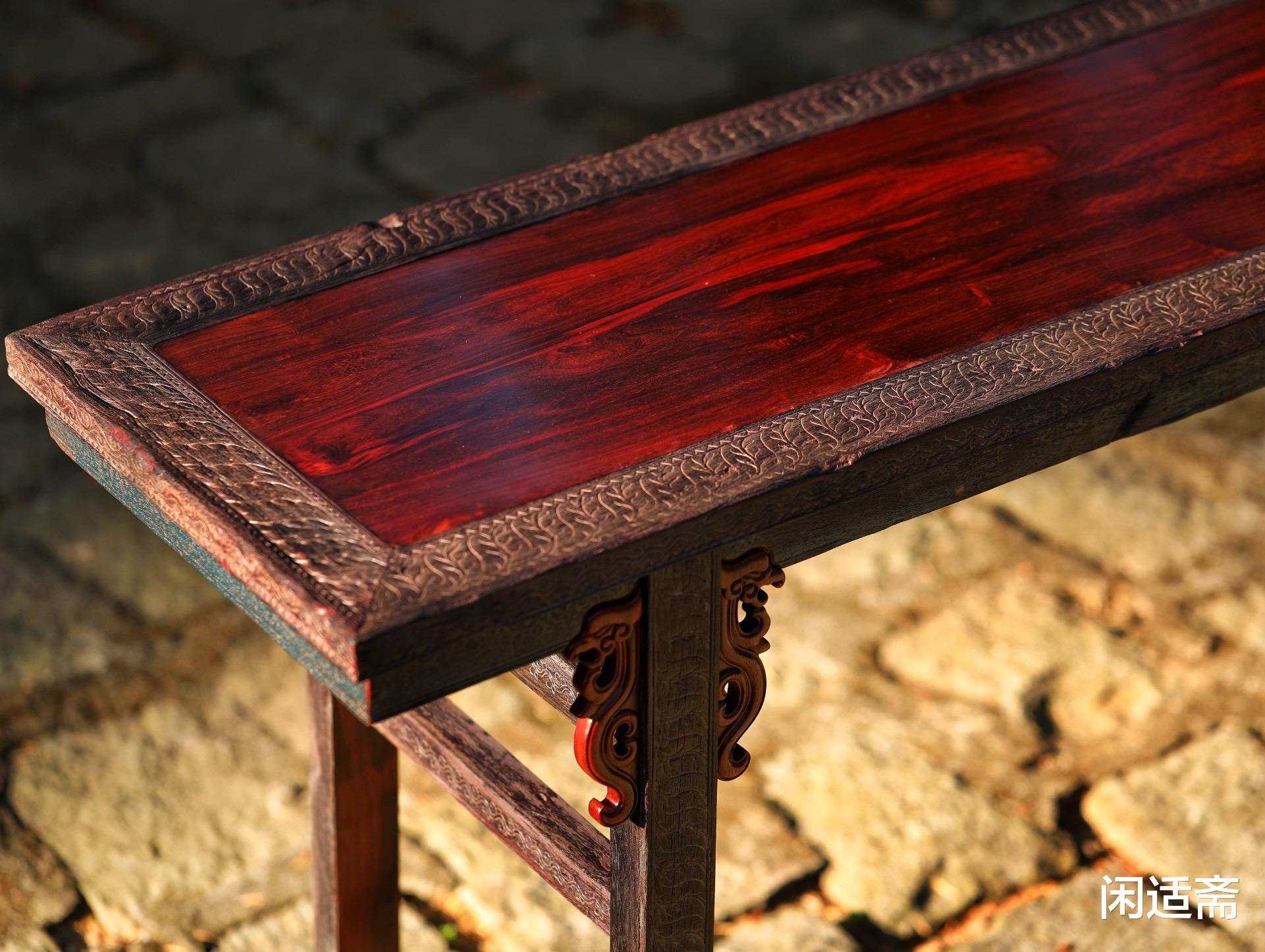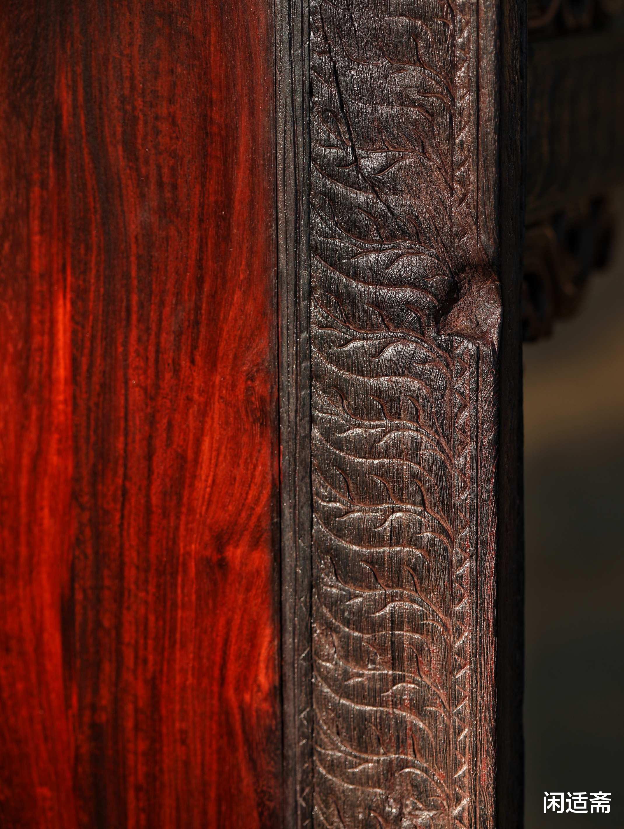此平头案通体采用印度小叶紫檀拆房雕花老料制作,拆房老料历经岁月沉淀,质地愈发细密如缎,触感细腻温润、无丝毫粗糙之感;色泽沉润似酒,光泽莹润通透,历经自然氧化后形成的皮壳沧桑古雅,自带岁月沉淀的厚重质感,木质本身的细密质地的与精湛的雕刻工艺相得益彰,沧桑的皮壳更凸显出器物的岁月韵味,无需多余装饰,仅以材质本真与工艺巧思,便成就了这件藏家臻品。是小叶紫檀中的珍稀之选,兼具极高的实用性与收藏潜力。