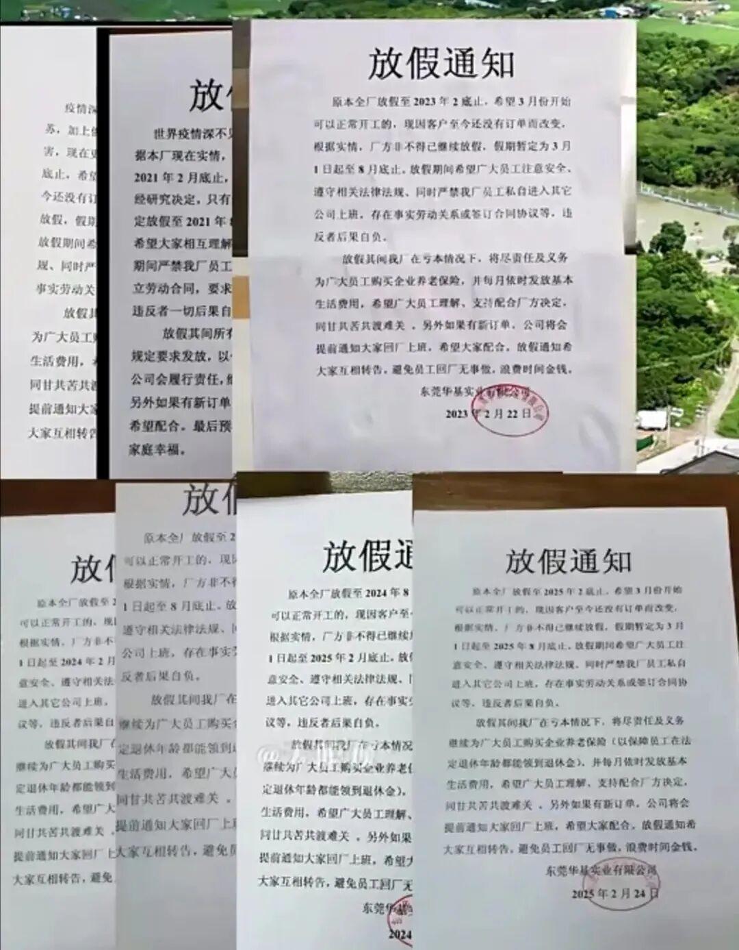 “又收到放假通知了”,东莞常平镇的老陈看着手机里的短信,心里五味杂陈——这是华基实业发来的第10份放假通知,从2020年