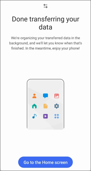 步骤5.等待数据传输过程完成并完成Android设备的设置。