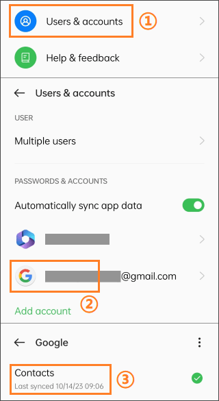 步骤 4. 在您的Android设备上登录同一个 Google 帐户,您所有 iPhone 的联系人都将转移到您的Android手机。