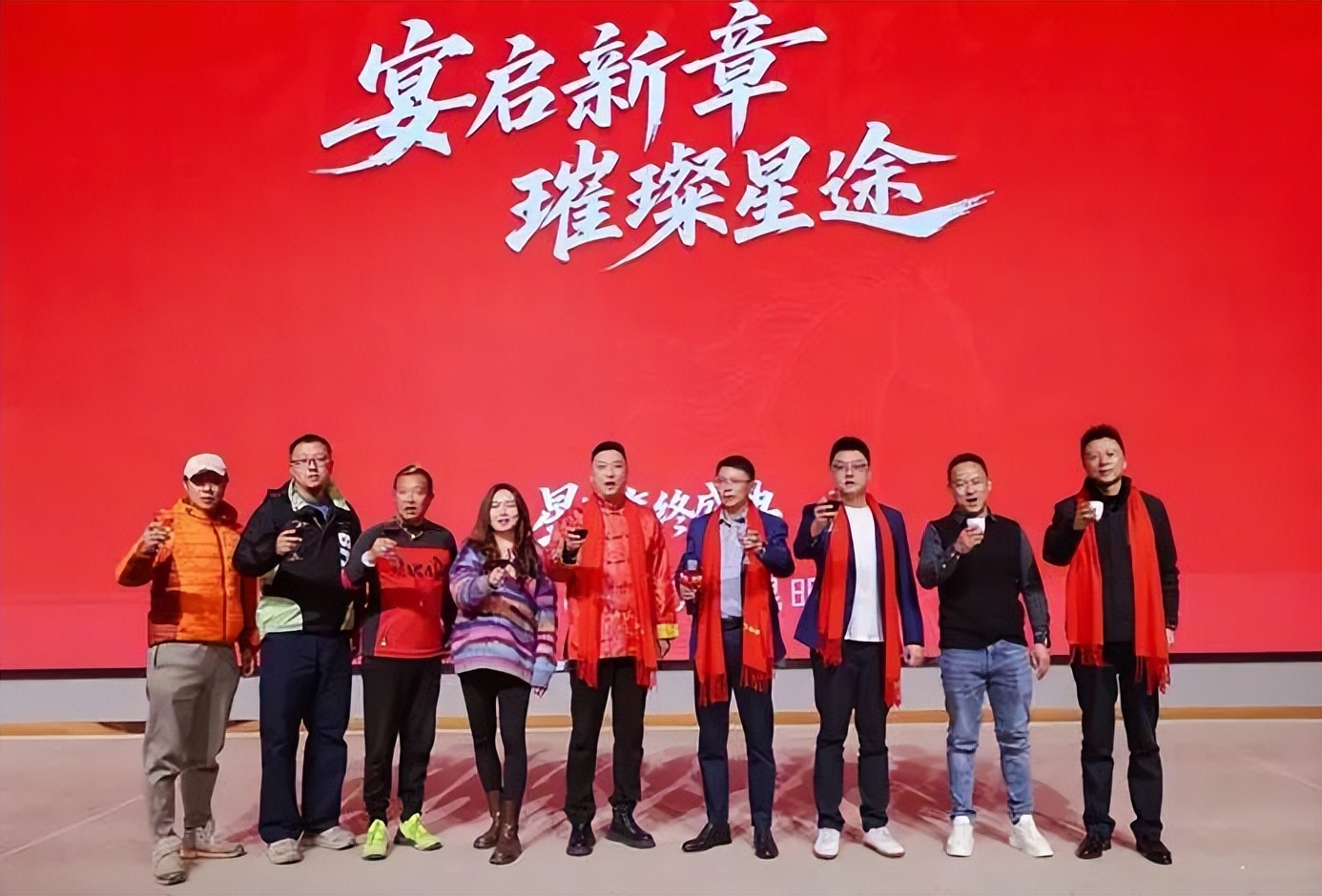 举杯共祝,家人团圆话未来两位领导致辞后,所有高层领导共同上台,为家宴举杯祝酒。