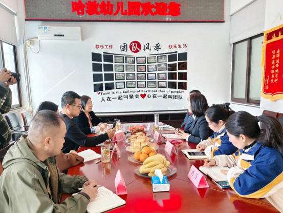 清晨,羊山哈敦幼儿园园长陈继红和园办组成员在幼儿园门口迎接孙敏女士的到来。随后,孙敏实地参观了幼儿园的环境,观看了孩子们的户外活动,最后,在该园三楼会议室与园办人员沟通交流。大家围坐一堂,展开了一场酣畅淋漓的工作交流。双方就日常园所管理运营中的具体实践畅所欲言,孙敏的指导建议更是干货满满、倾囊相授。