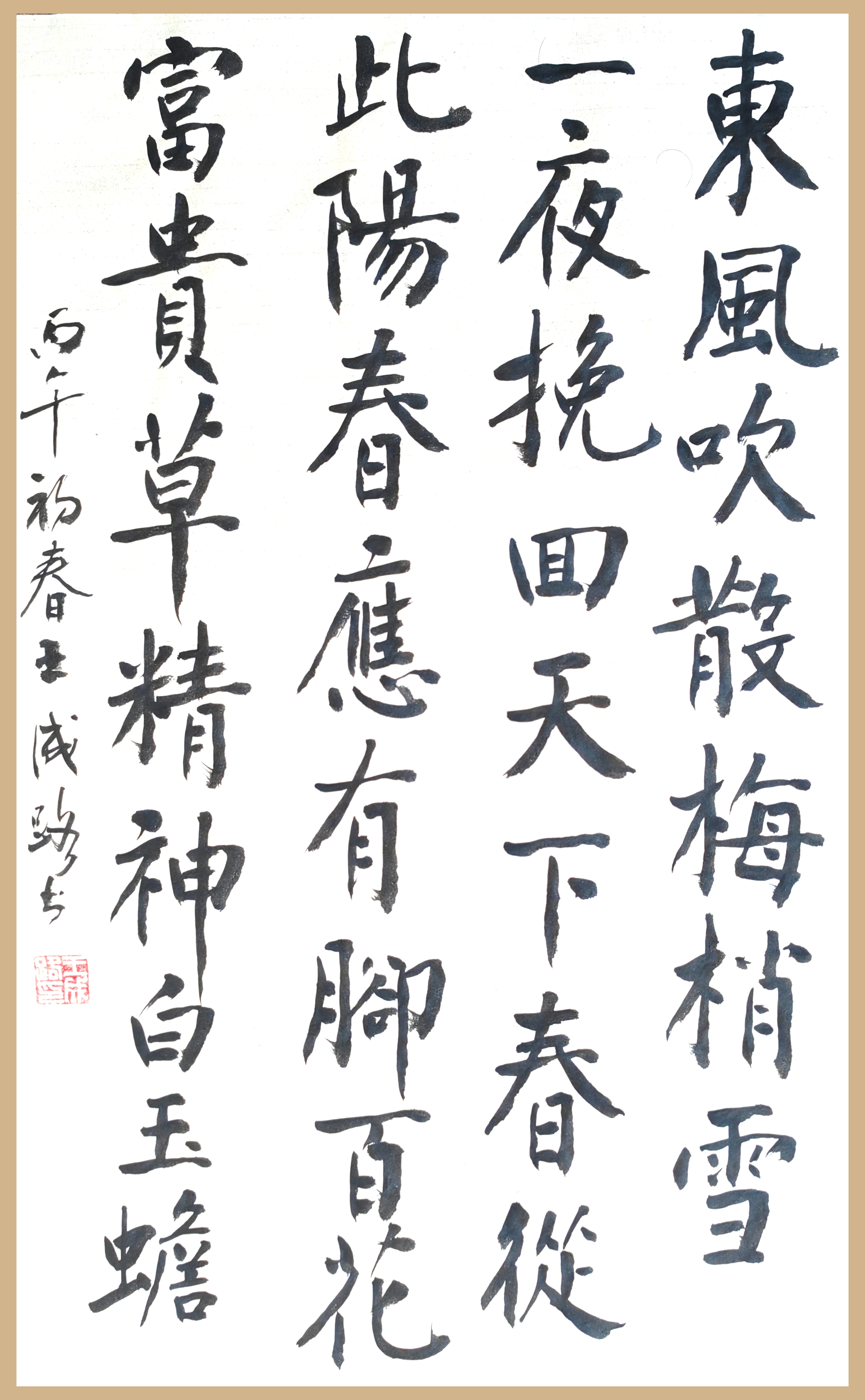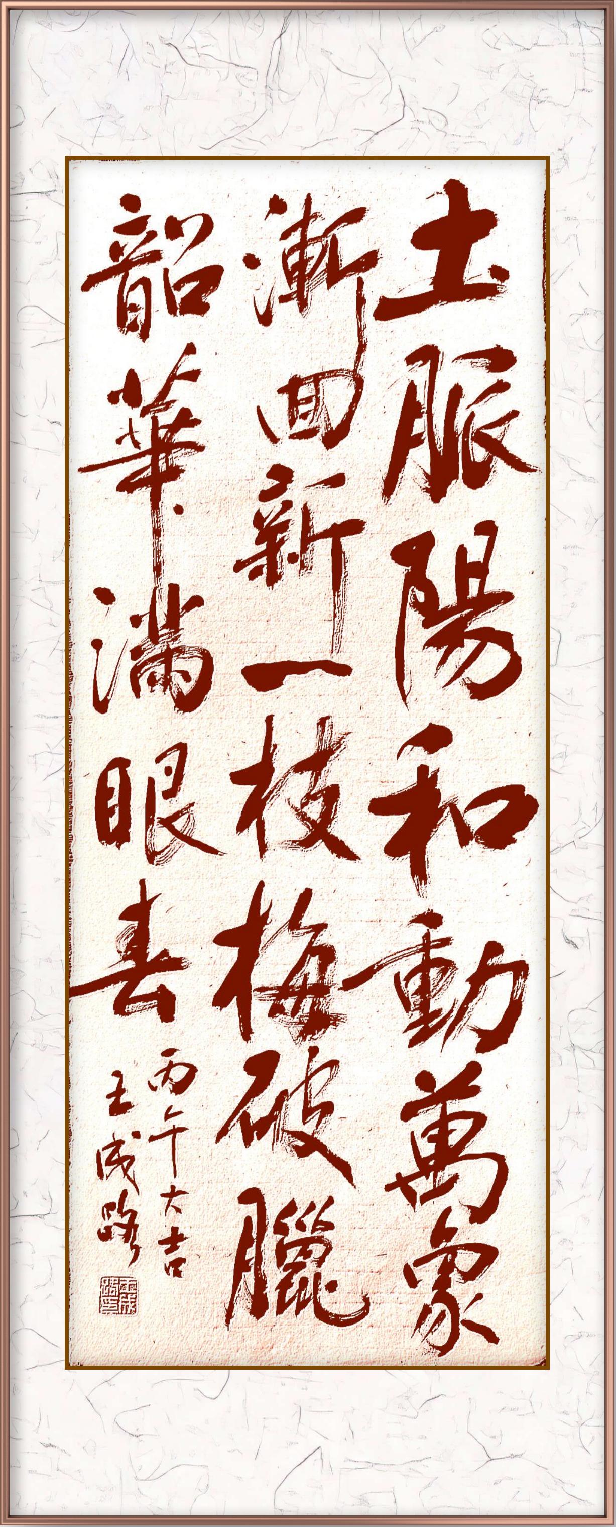 岁聿云暮,一元复始。春意盎然,春节在即。丙午马年,按天干说“丙”字寓意红火,光明和兴旺之义。所以,今年应定义为赤马鸿运之年!基于此,我近日写了几幅有关春意的拙作,传给师友们以祝马年大吉,鸿运当头,踔厉风发,祉猷并茂!