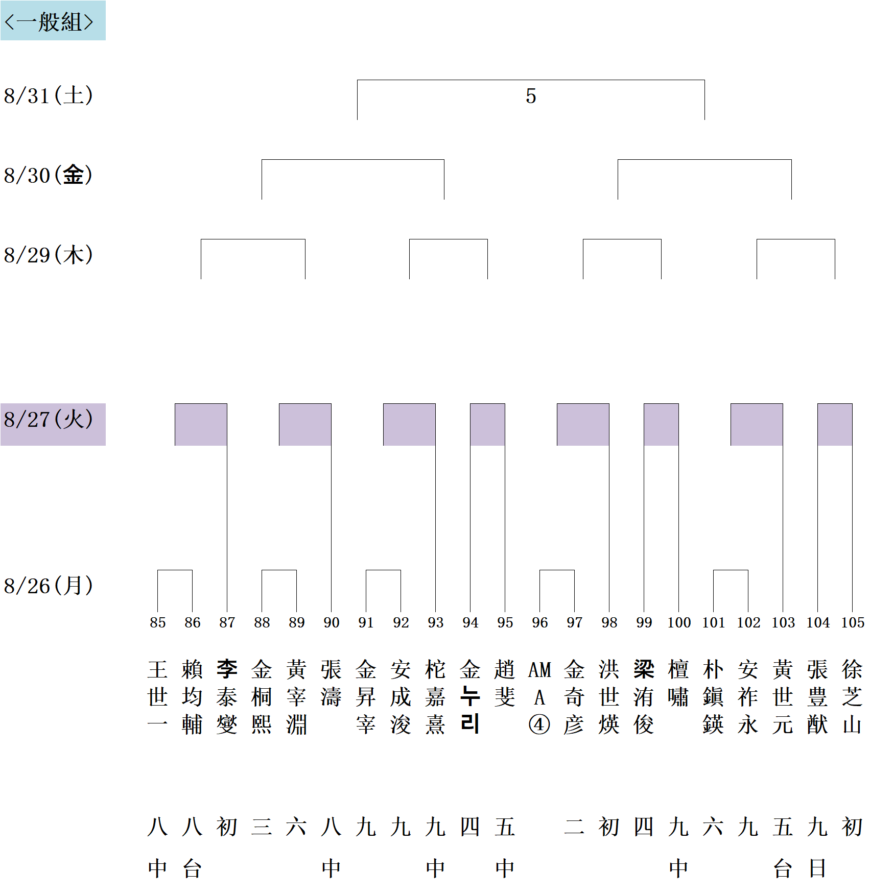 8月26-31日北京时间10时,29届三星车险杯世界预选在韩国进行,本赛32强种子:丁浩谢尔豪许嘉阳李轩豪辜梓豪,朴廷桓卞相壹金明训申旻埈申真谞,一力辽芝野虎丸许皓鋐+外卡。18小组预选:林君谚vs尹峻相,胜者对阵柯洁。檀啸vs梁洧准。比赛每方2小时5次1分钟读秒,冠亚军奖金3亿、1亿韩元。