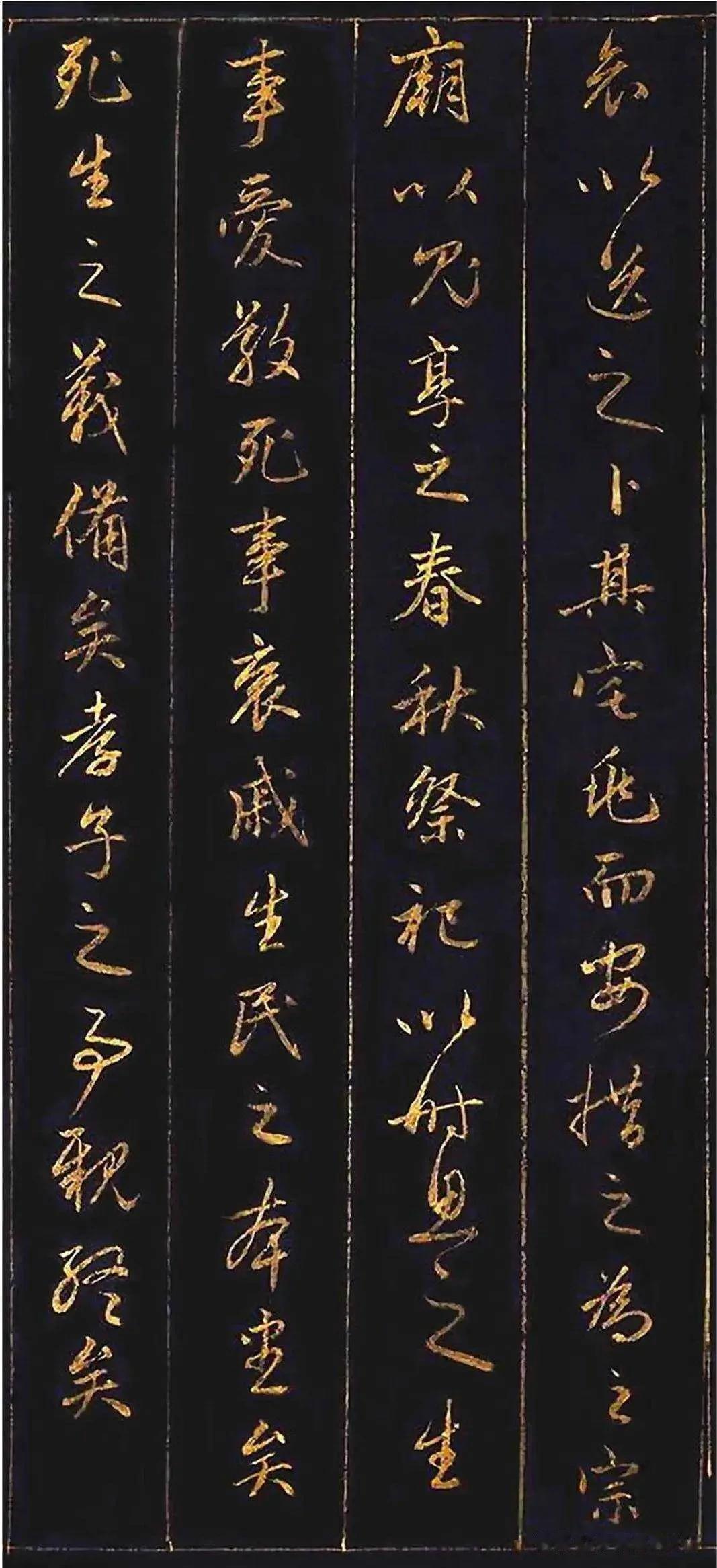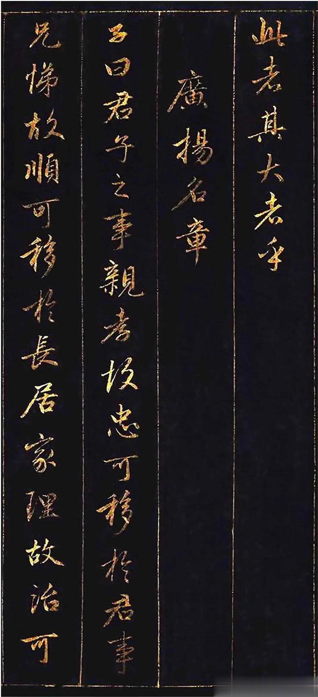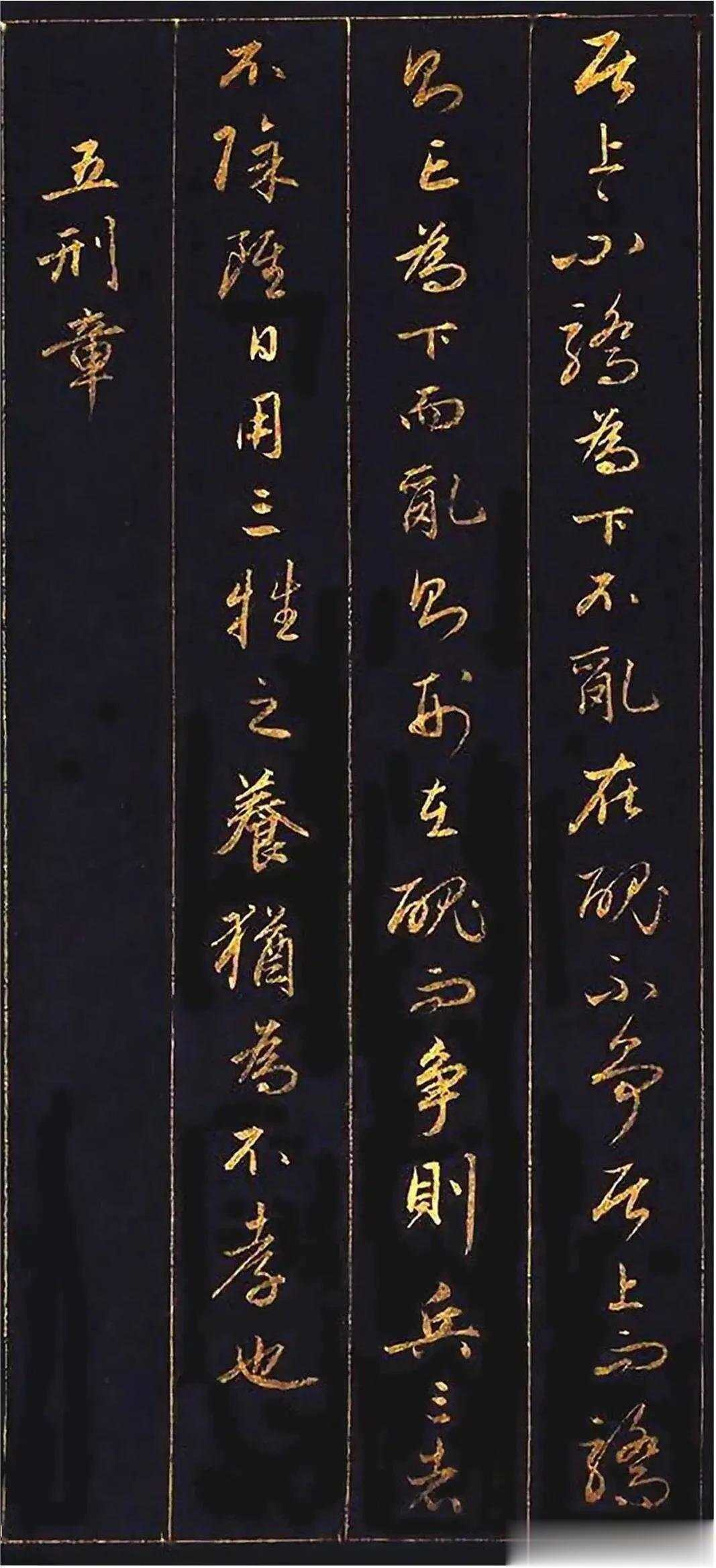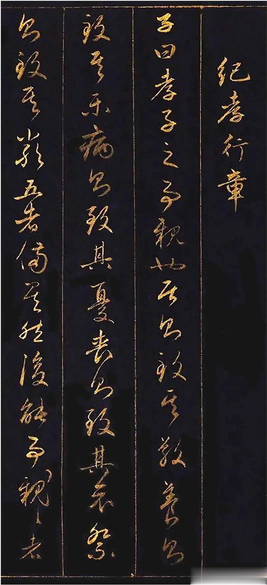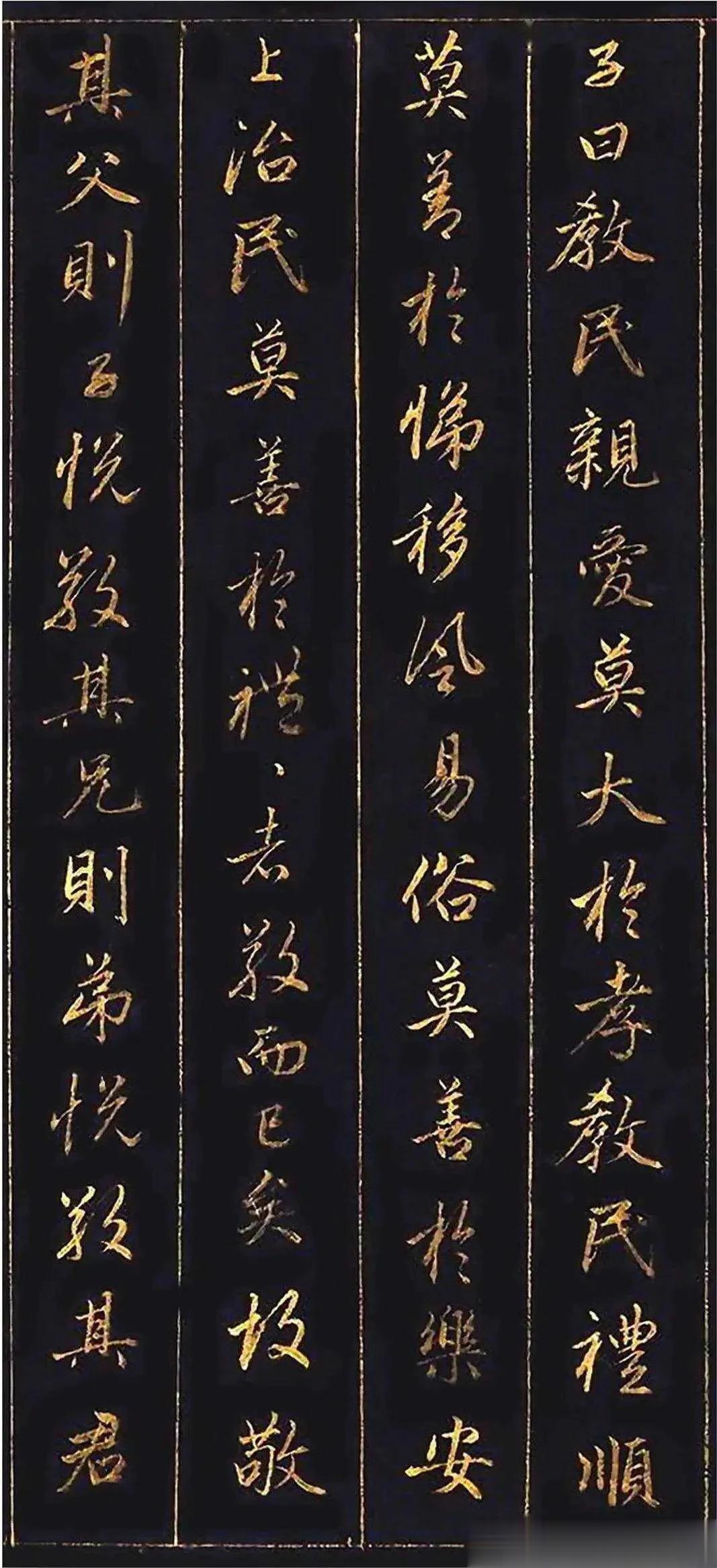 金粉的明丽并非炫技,反让“孝为德本”的庄重多了层可触的雅韵:墨底沉敛压得住金的亮,金粉鲜活托得起书的柔,书艺、经典与材质之美相融,成了“以贵器载至理”的范本。